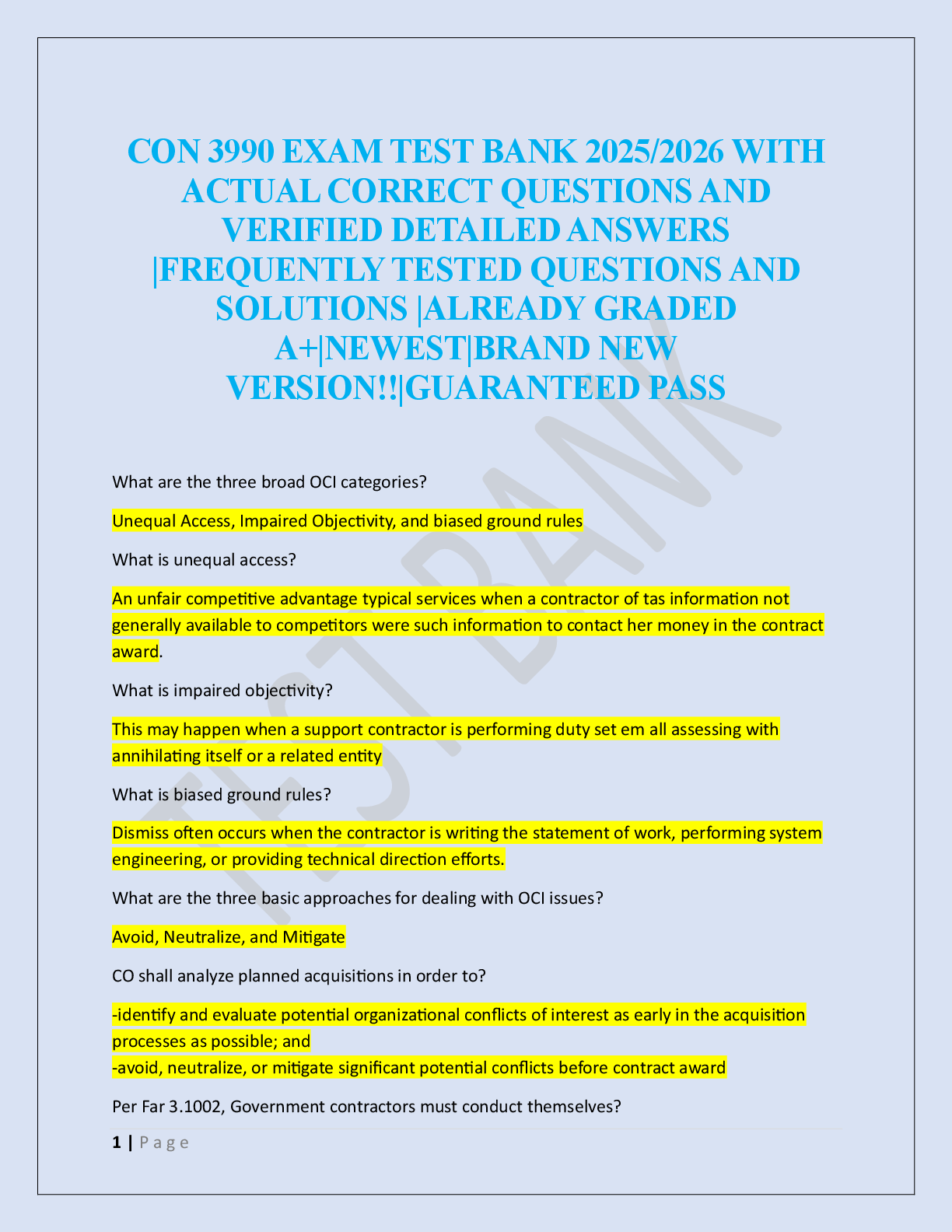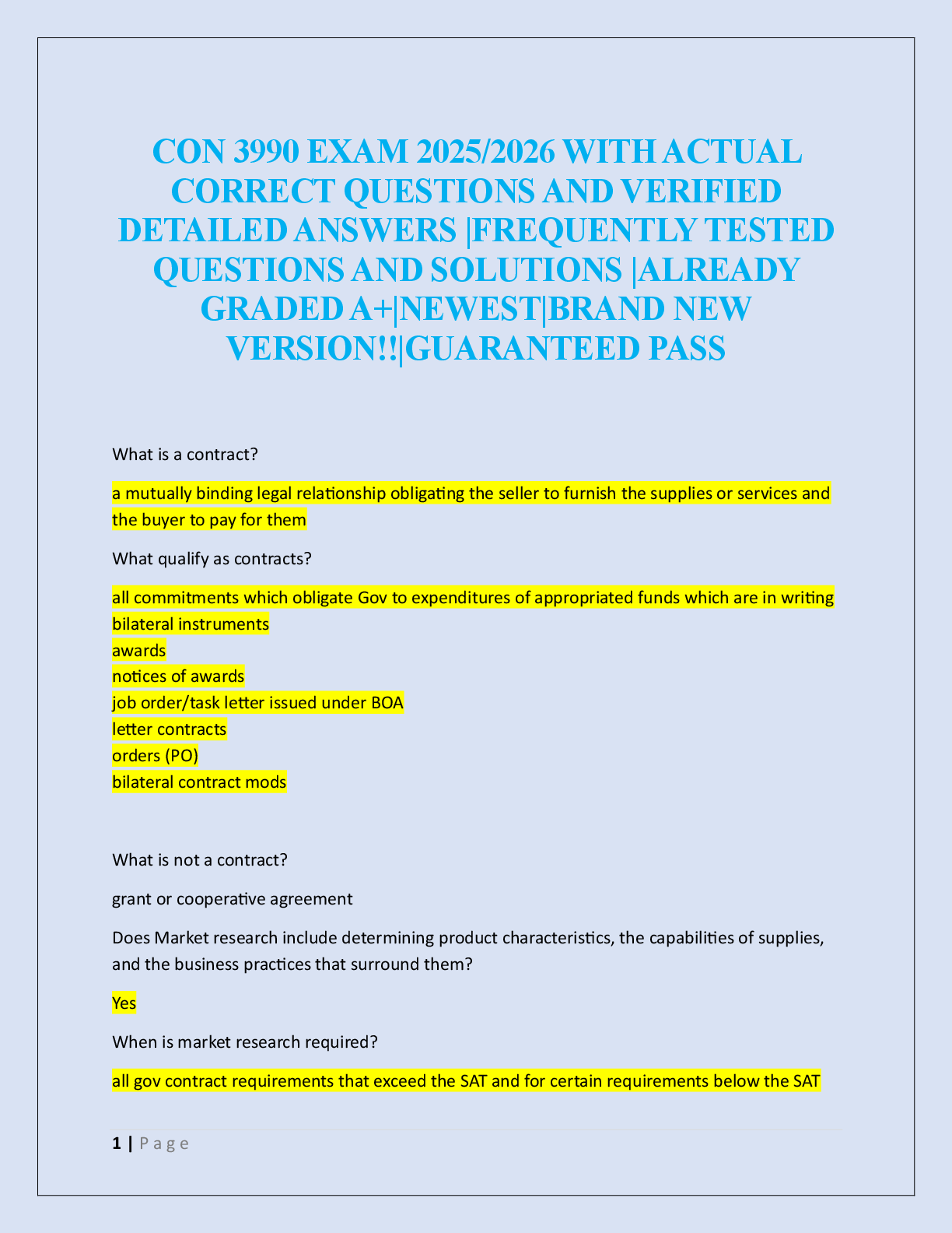 Promulgated Contracts Forms > EXAM > CON 3990 EXAM TEST BANK 2025/2026 (All)