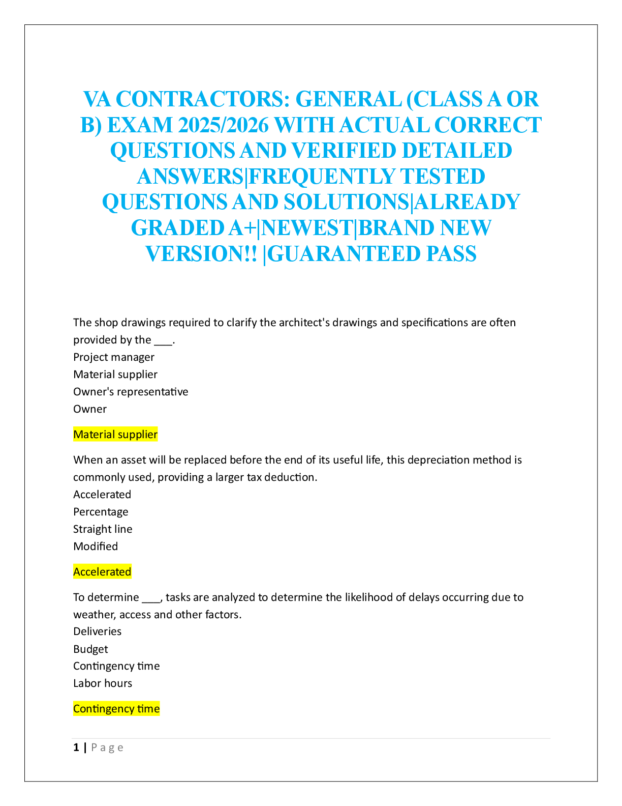 PROMULGATED CONTRACTS FORMS . > EXAM > VA CONTRACTORS: GENERAL (CLASS A OR B) EXAM (All)