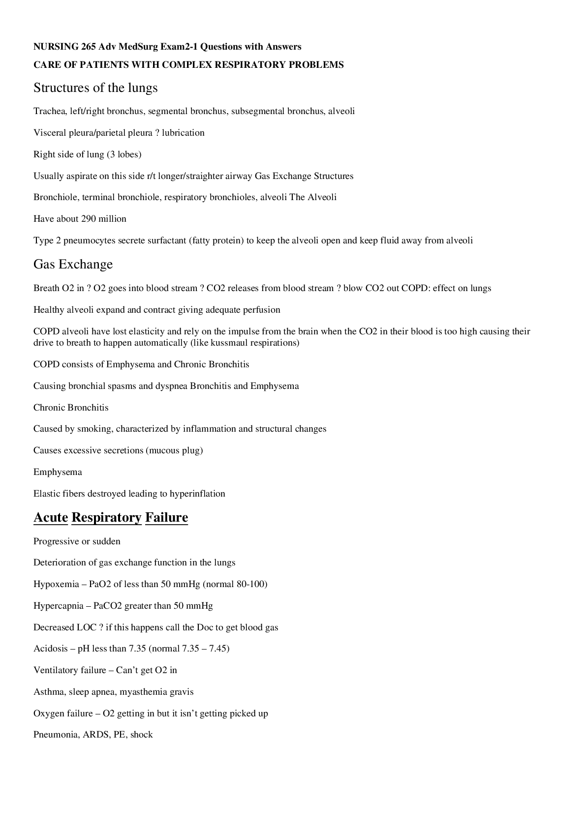 NURSING. > EXAM > NURSING 265 Adv MedSurg Exam2-1 Questions with Answers,100% CORRECT (All)