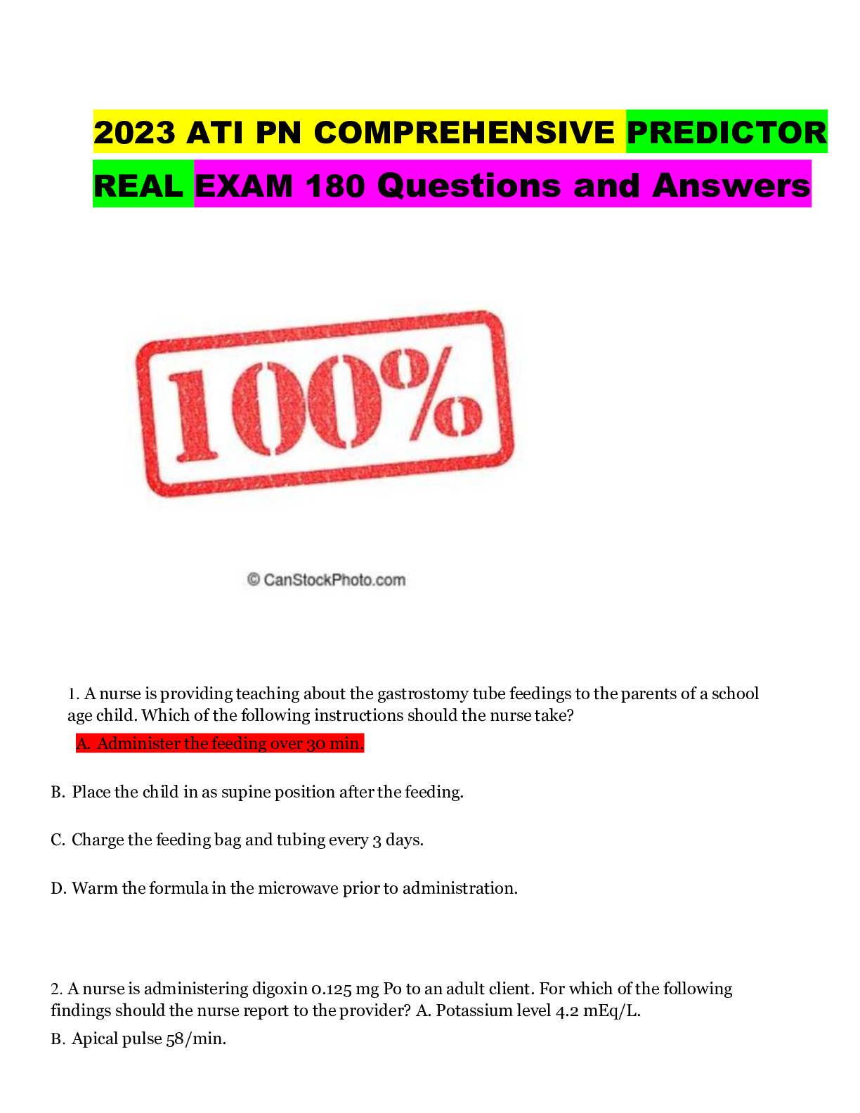 NURSING. > EXAM > 2023 ATI PN COMPREHENSIVE PREDICTOR REAL EXAM 180 Questions and Answers (All)