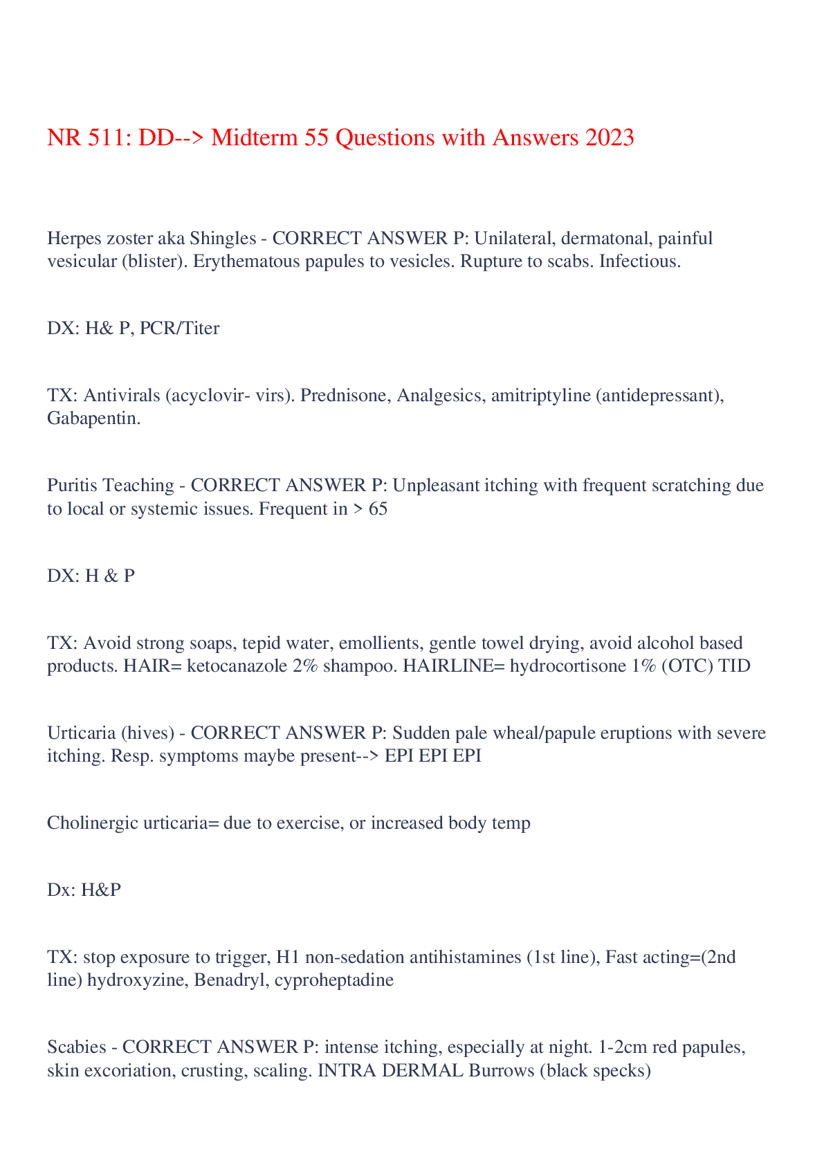 NURSING. > EXAM > NR 511: DD--> Midterm 55 Questions with Answers 2023,100% CORRECT (All)