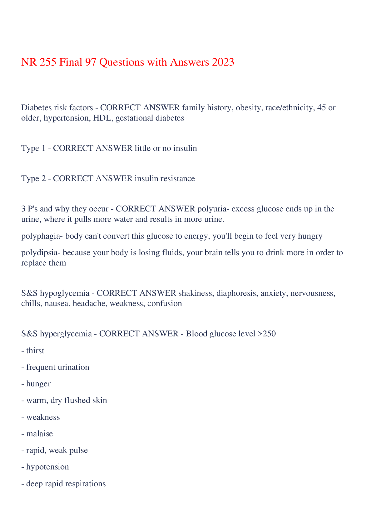 NURSING. > EXAM > NR 255 Final 97 Questions with Answers 2023,100% CORRECT (All)