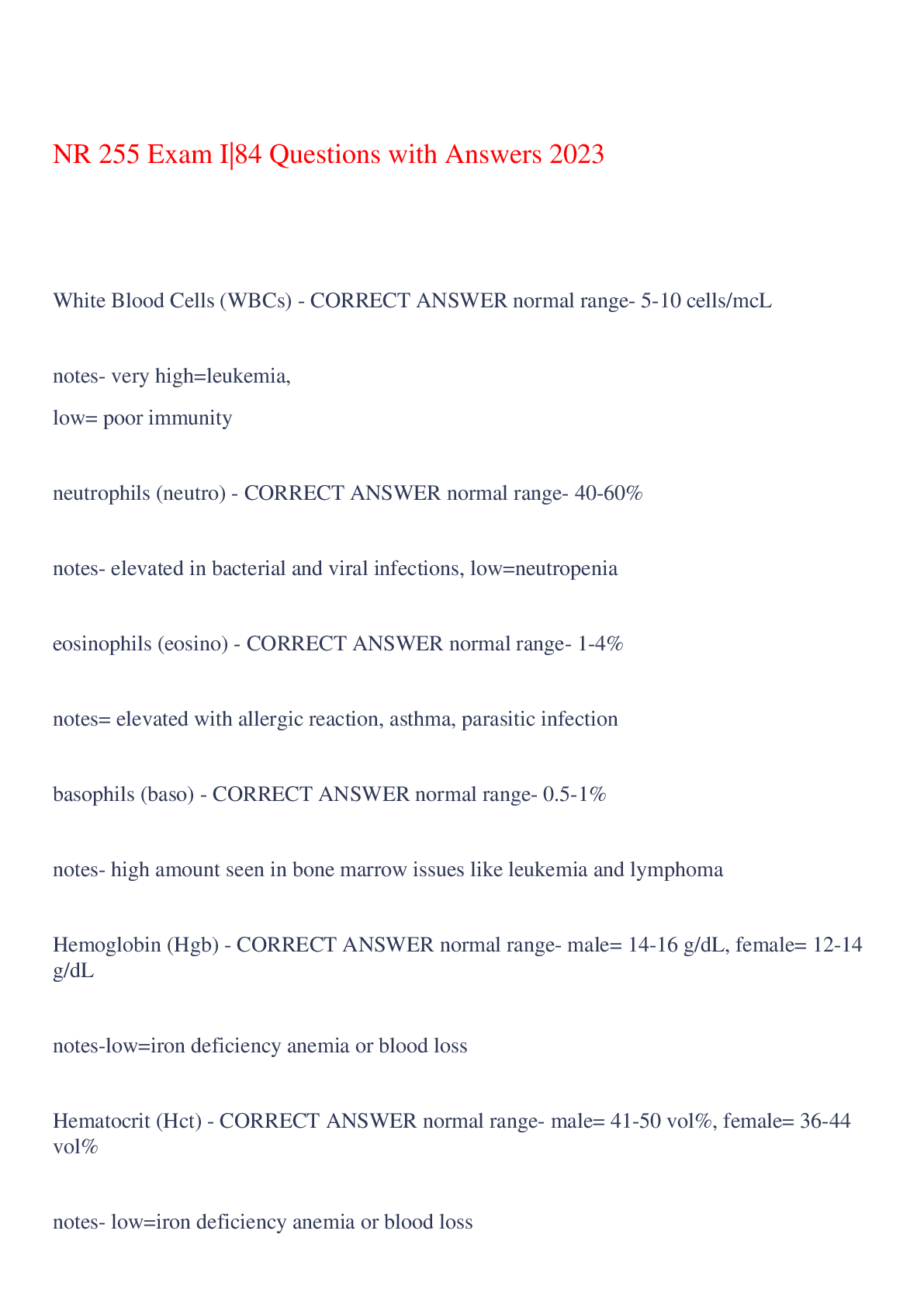 NURSING. > EXAM > NR 255 Exam I|84 Questions with Answers 2023,100% CORRECT (All)