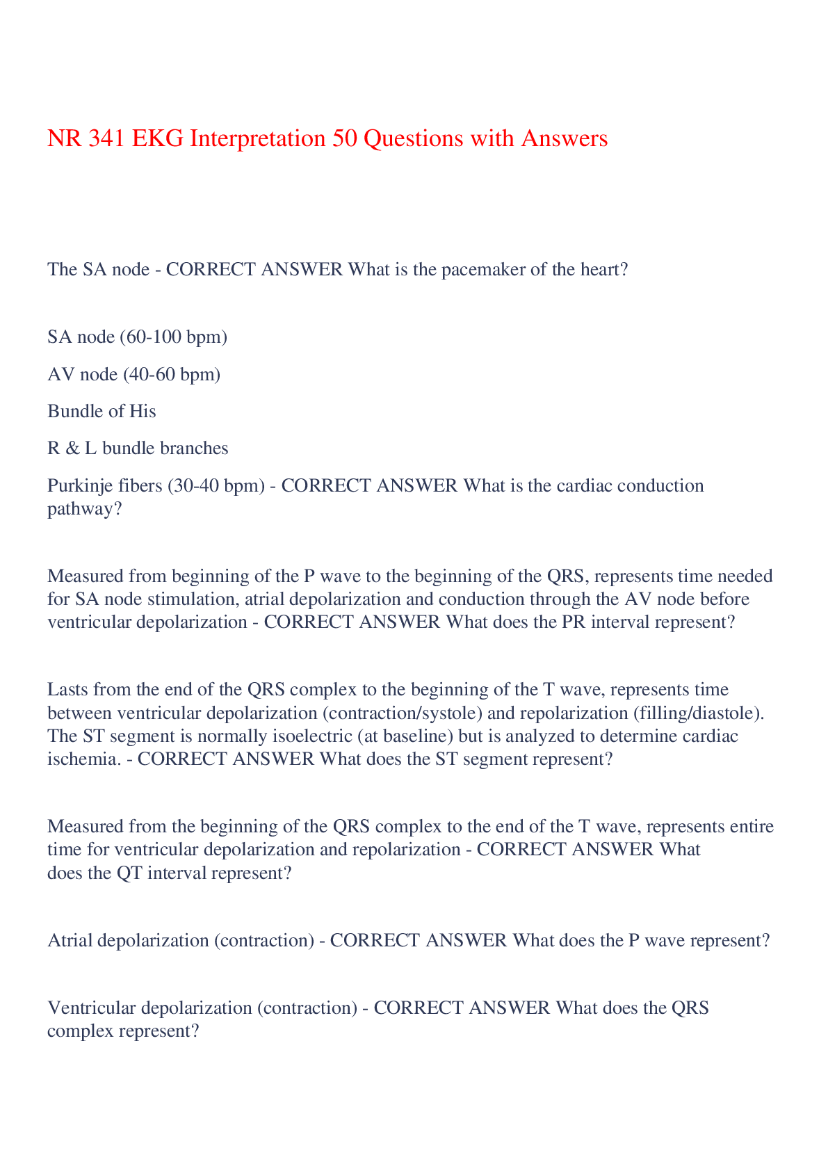 NURSING. > EXAM > NR 341 EKG Interpretation 50 Questions with Answers,100% CORRECT (All)
