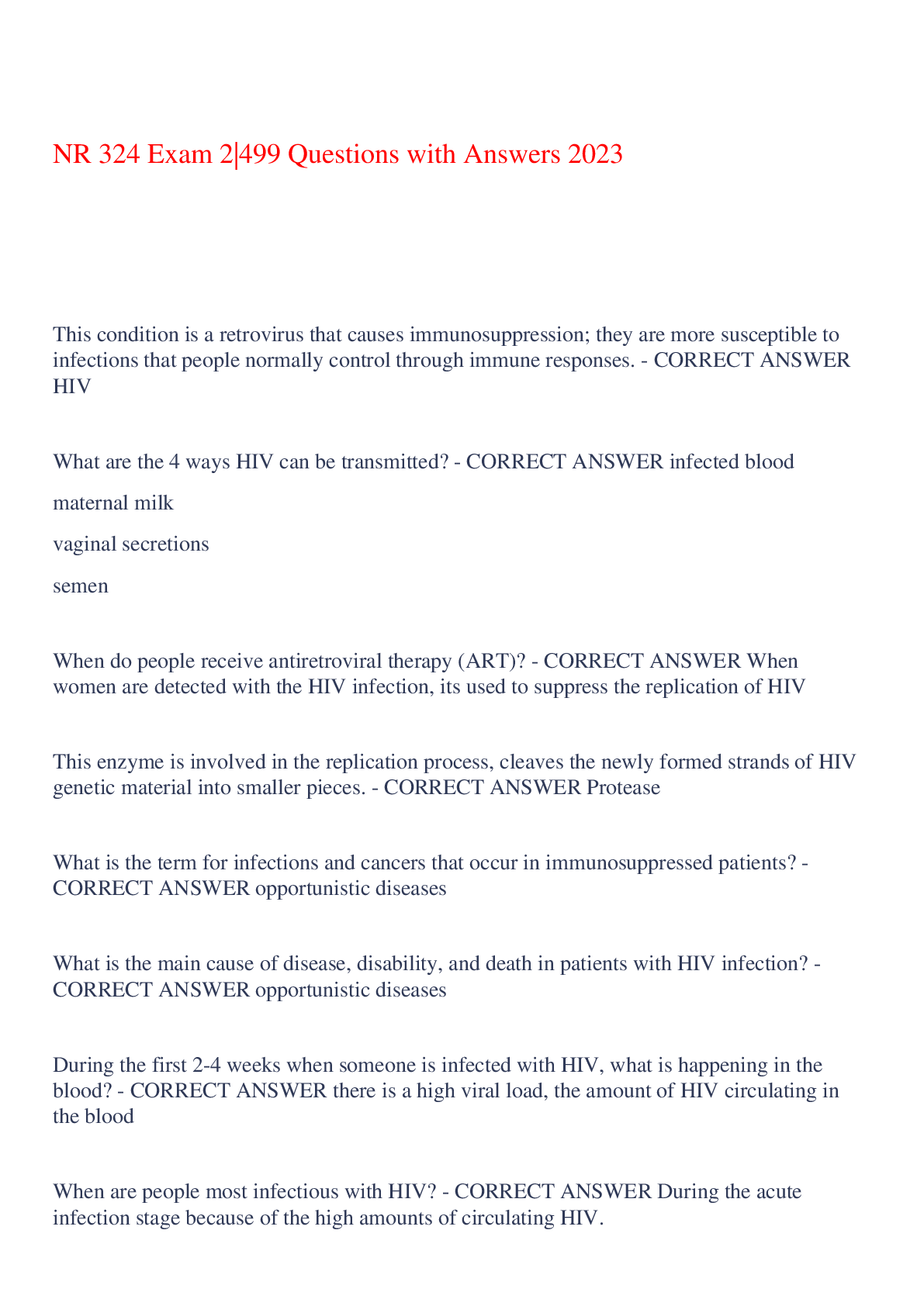 NURSING. > EXAM > NR 324 Exam 2|499 Questions with Answers 2023,100% CORRECT (All)