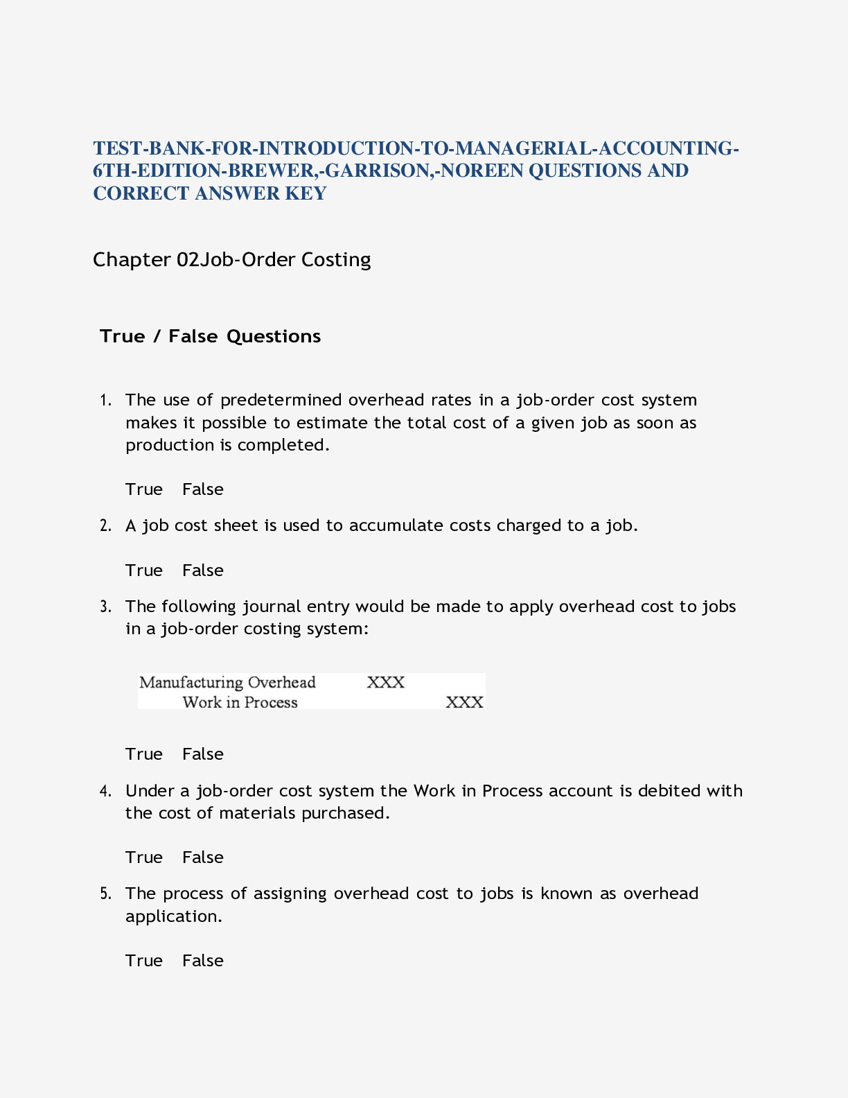 NURSING. > EXAM > TEST-BANK-FOR-INTRODUCTION-TO-MANAGERIAL-ACCOUNTING-6TH-EDITION-BREWER,-GARRISON,-NOREEN QUESTIONS AND CORRECT ANSWER KEY (All)