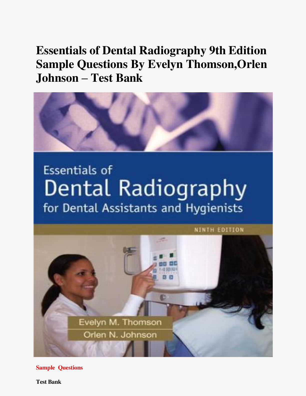 NURSING. > EXAM > Essentials of Dental Radiography 9th Edition Sample Questions By Evelyn Thomson,Orlen Johnson – Test Bank (All)