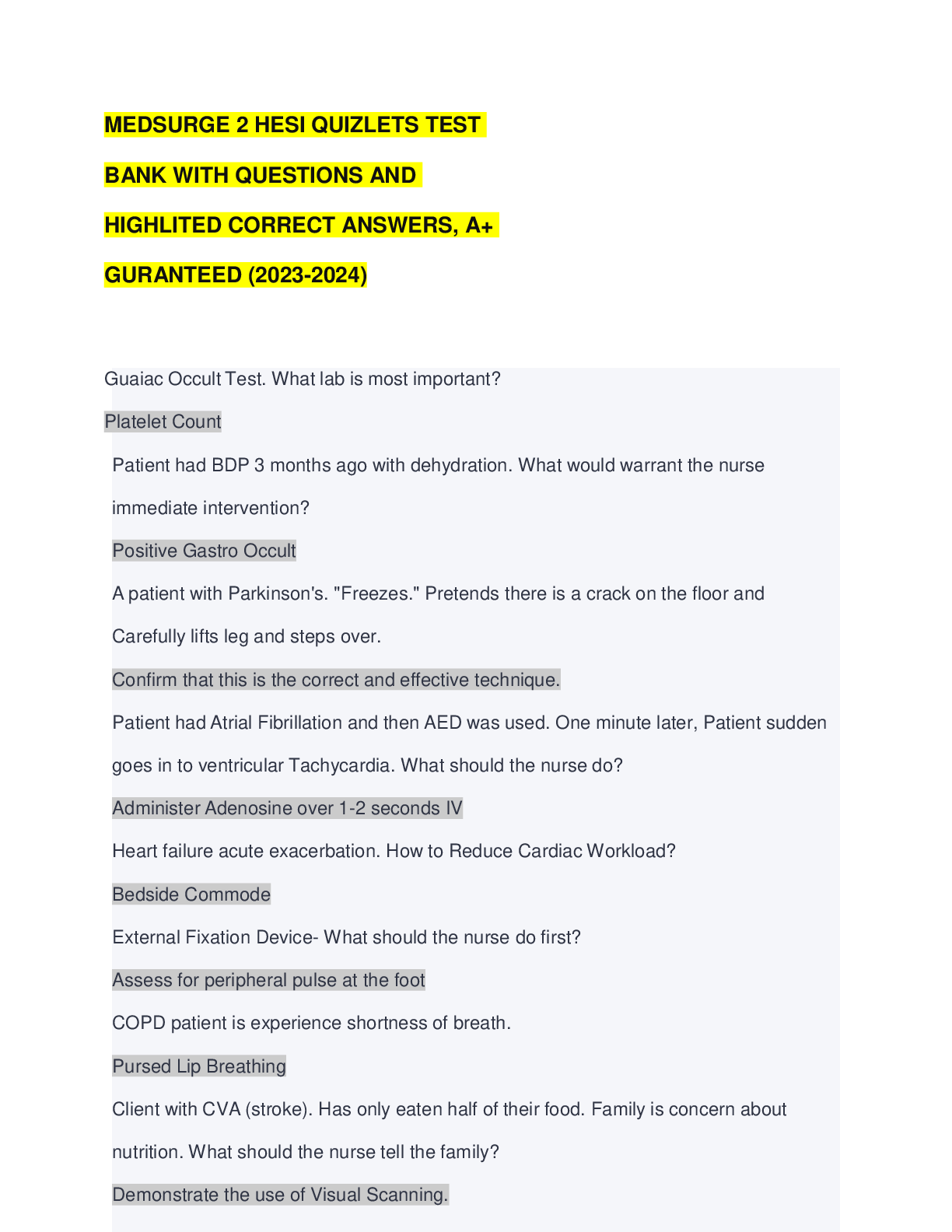 NURSING. > EXAM > MEDSURGE 2 HESI QUIZLETS TEST BANK WITH QUESTIONS AND HIGHLITED CORRECT ANSWERS, A+ GURANTEED (2023-2024) (All)