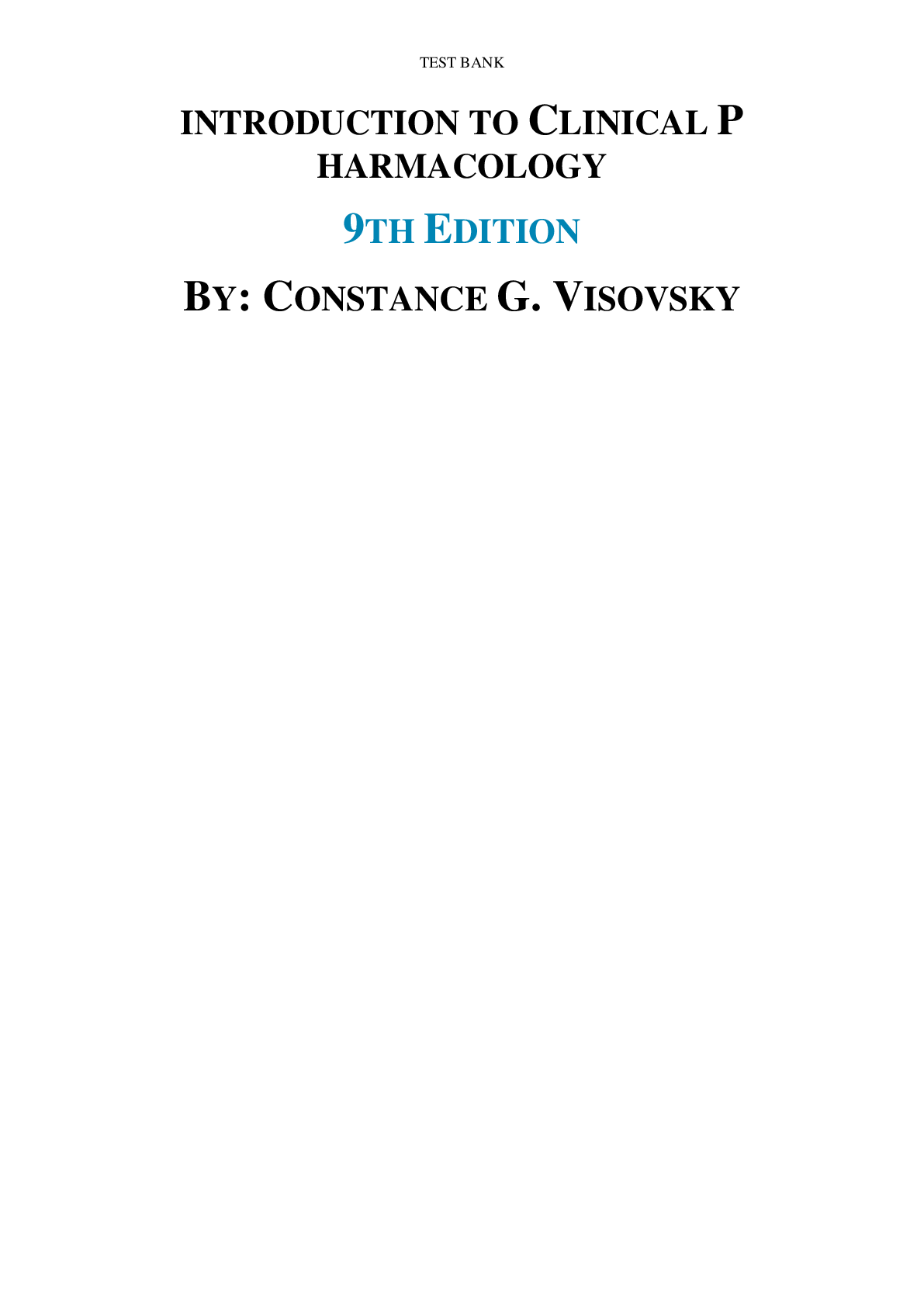 NURSING. > EXAM > Test Bank For Introduction To Clinical Pharmacology 9th Edition By Visovsky Zambroski Hosler/Latest Edition (All)