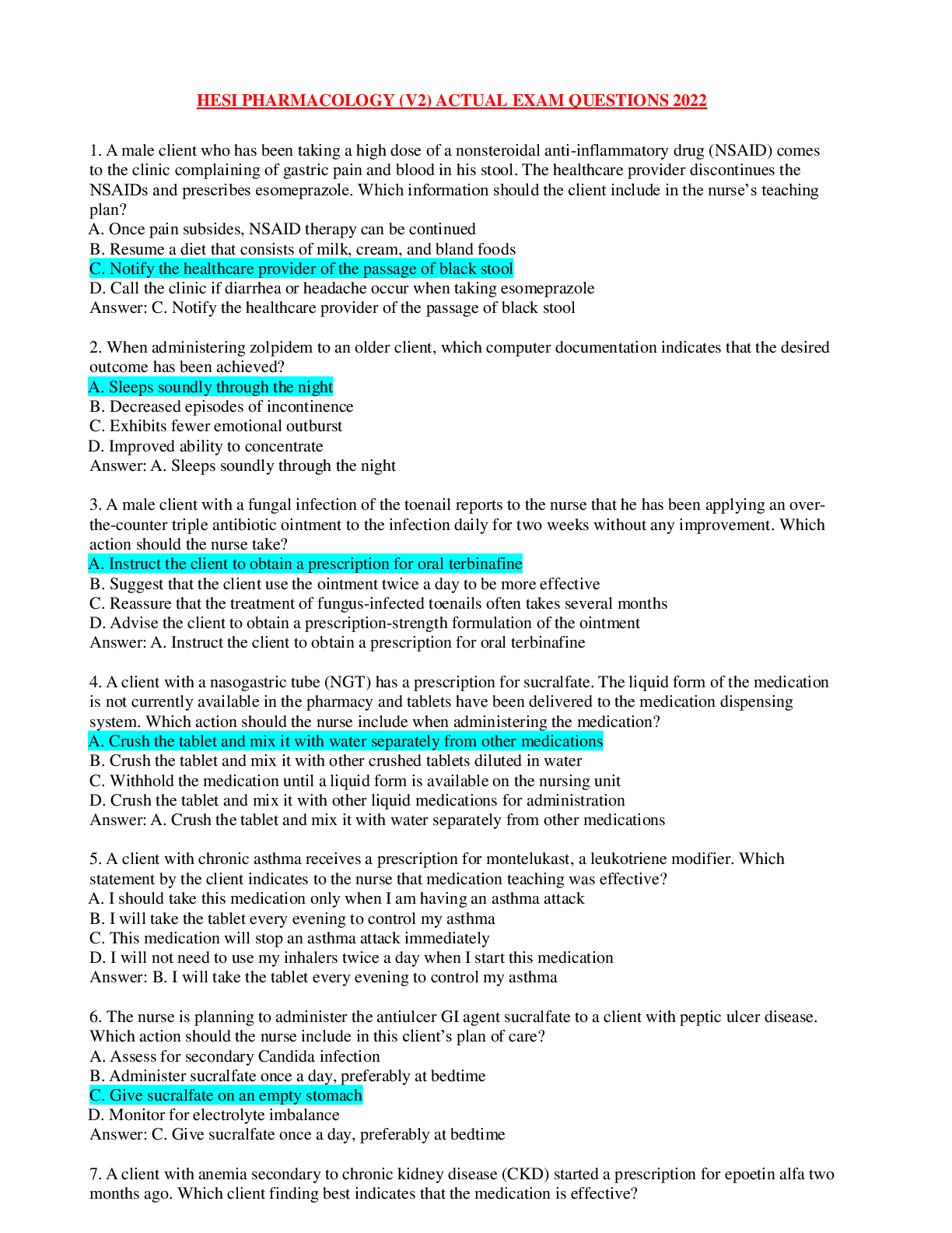 NURSING. > EXAM > HESI PHARMACOLOGY (V2) ACTUAL EXAM QUESTIONS 2022 (All)