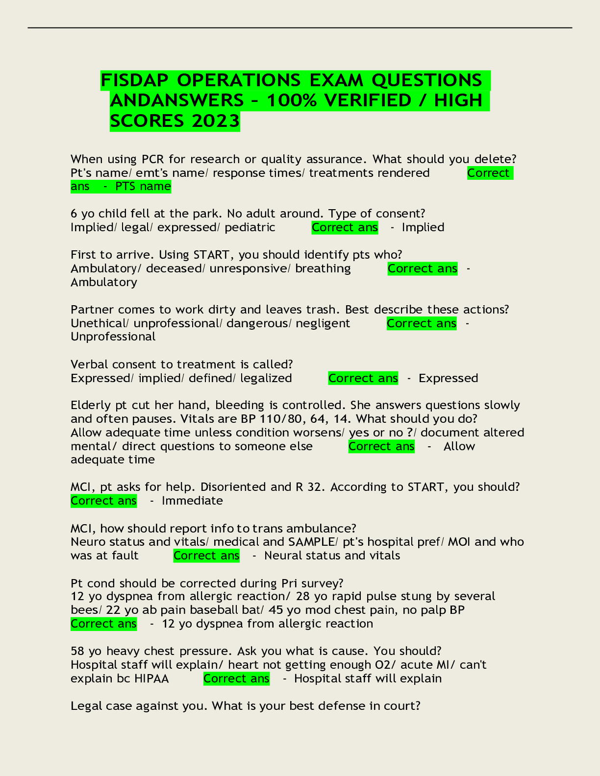 NURSING. > EXAM > FISDAP OPERATIONS EXAM QUESTIONS AND ANSWERS – 100% VERIFIED / HIGH SCORES 2023 (All)
