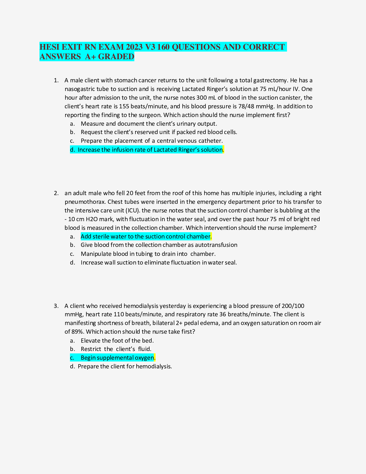 NURSING. > EXAM > HESI EXIT RN EXAM 2023 V3 160 QUESTIONS AND CORRECT ANSWERS A+ GRADED (All)