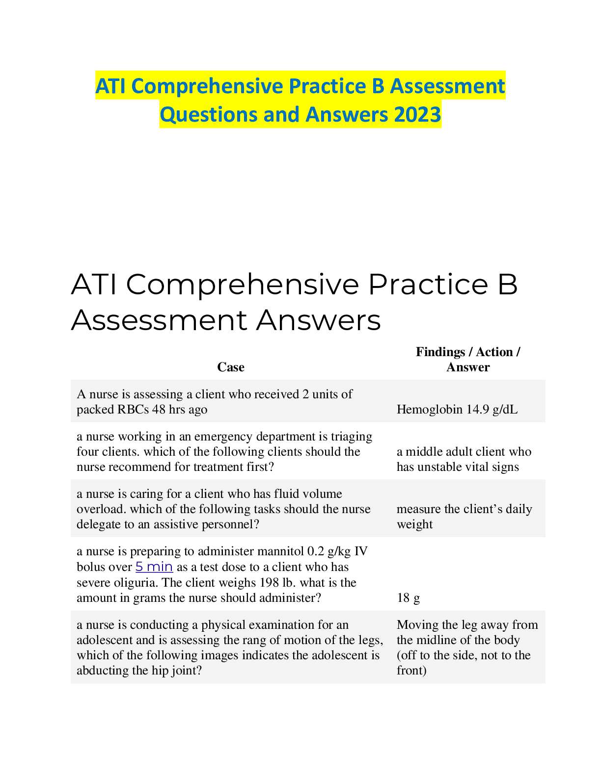 NURSING. > EXAM > ATI Comprehensive Practice B Assessment Questions and Answers 2023 (All)