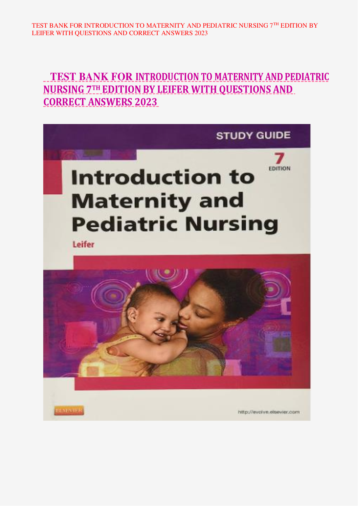 NURSING. > EXAM > TEST BANK FOR INTRODUCTION TO MATERNITY AND PEDIATRIC NURSING 7TH EDITION BY LEIFER WITH QUESTIONS AND CORRECT ANSWERS 2023 (All)