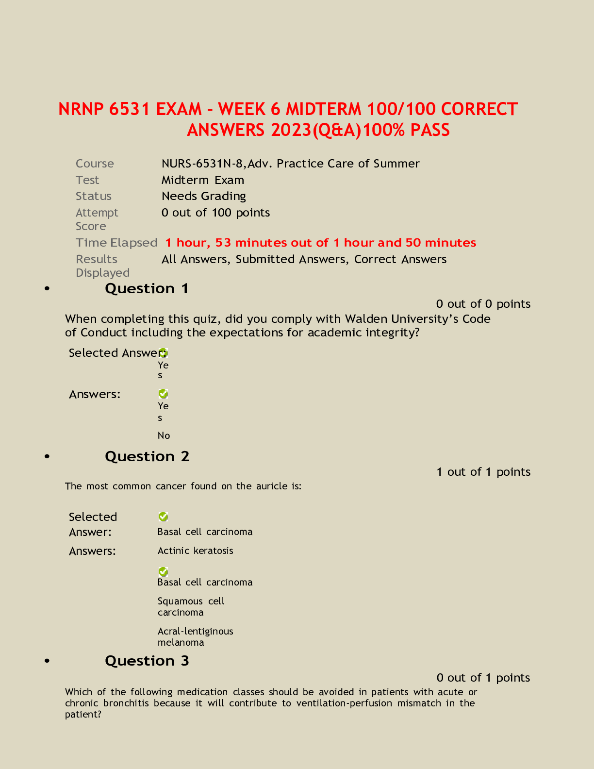 NURSING. > EXAM > NRNP 6531 EXAM - WEEK 6 MIDTERM 100/100 CORRECT ANSWERS 2023(Q&A)100% PASS (All)