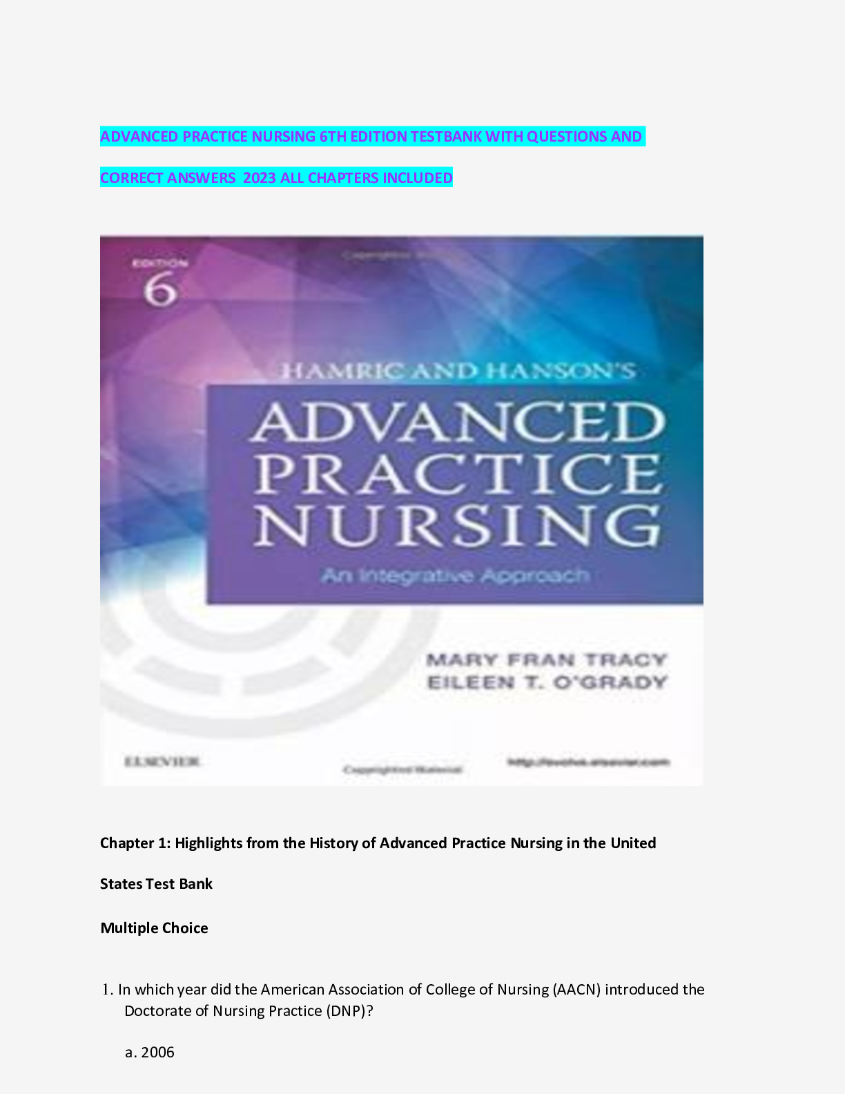 NURSING. > EXAM > ADVANCED PRACTICE NURSING 6TH EDITION TESTBANK WITH QUESTIONS AND CORRECT ANSWERS 2023 ALL CHAPTERS INCLUDED (All)
