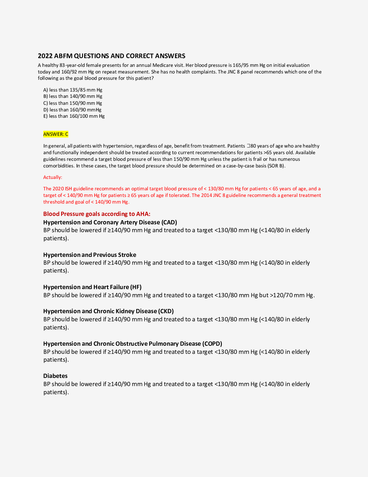 NURSING. > EXAM > 2022 ABFM QUESTIONS AND CORRECT ANSWERS (All)