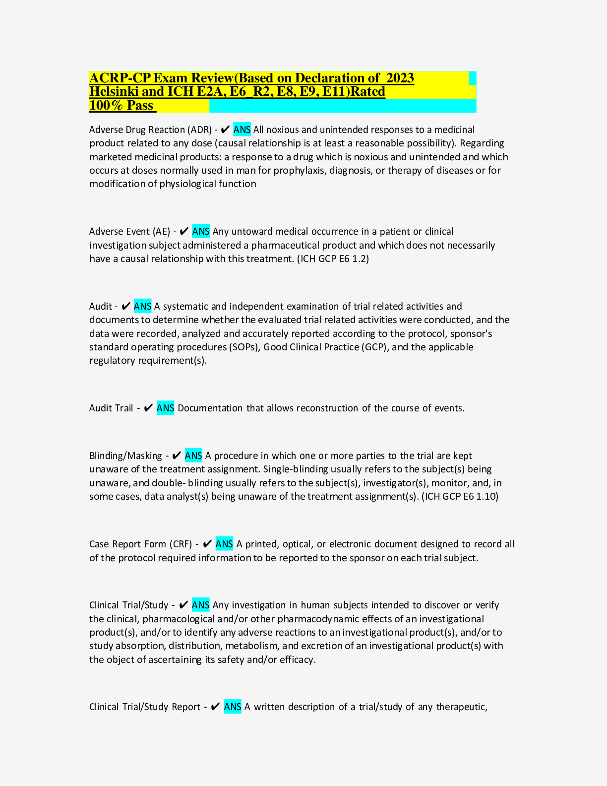 NURSING. > EXAM > ACRP-CP Exam Review(Based on Declaration of 2023 (All)
