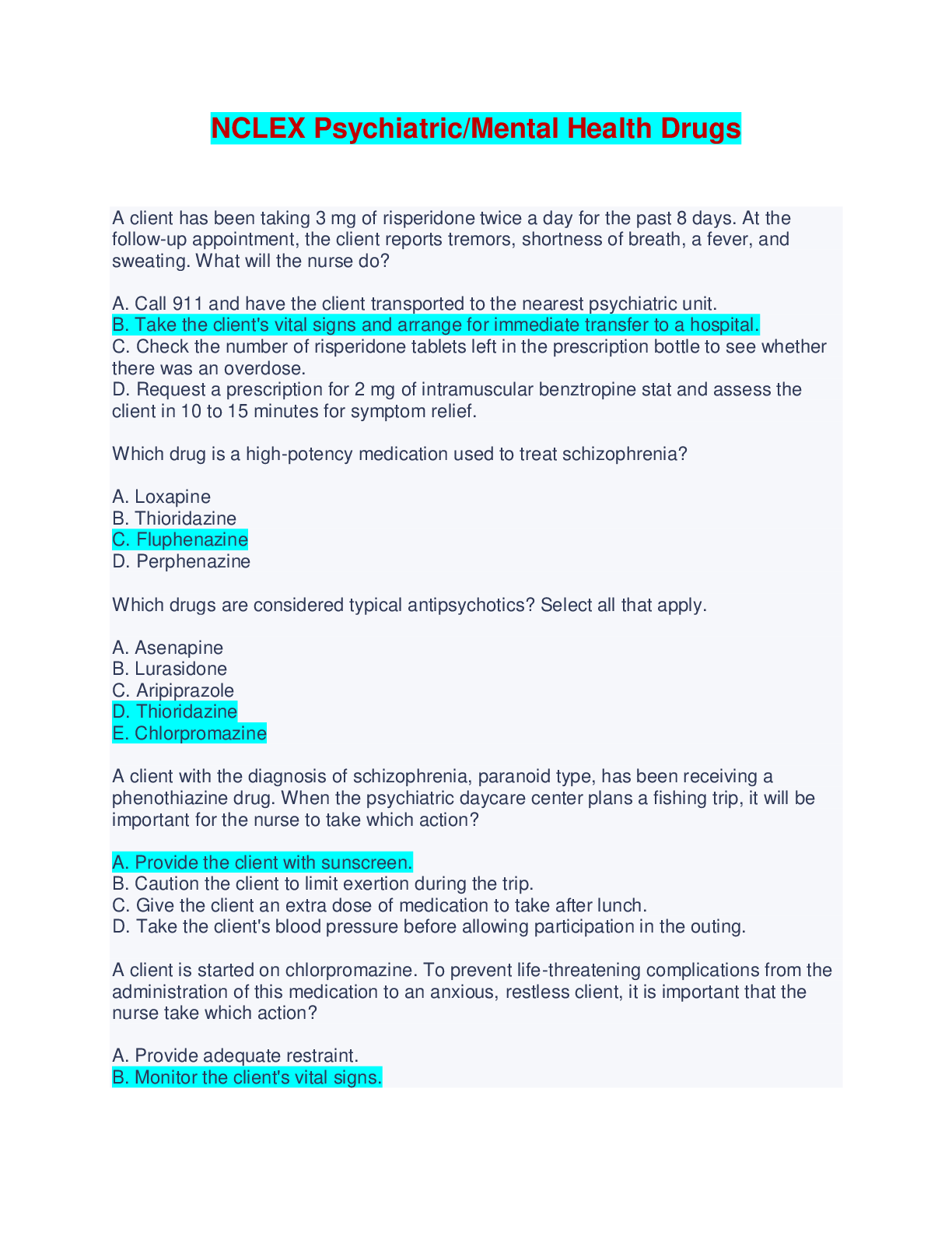 NURSING. > EXAM > NCLEX Psychiatric/Mental Health Drugs - Questions and Answers (All)