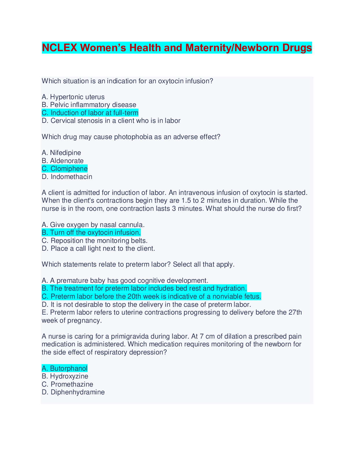 NURSING. > EXAM > NCLEX Women’s Health and Maternity/Newborn Drugs - Questions and Answers (All)