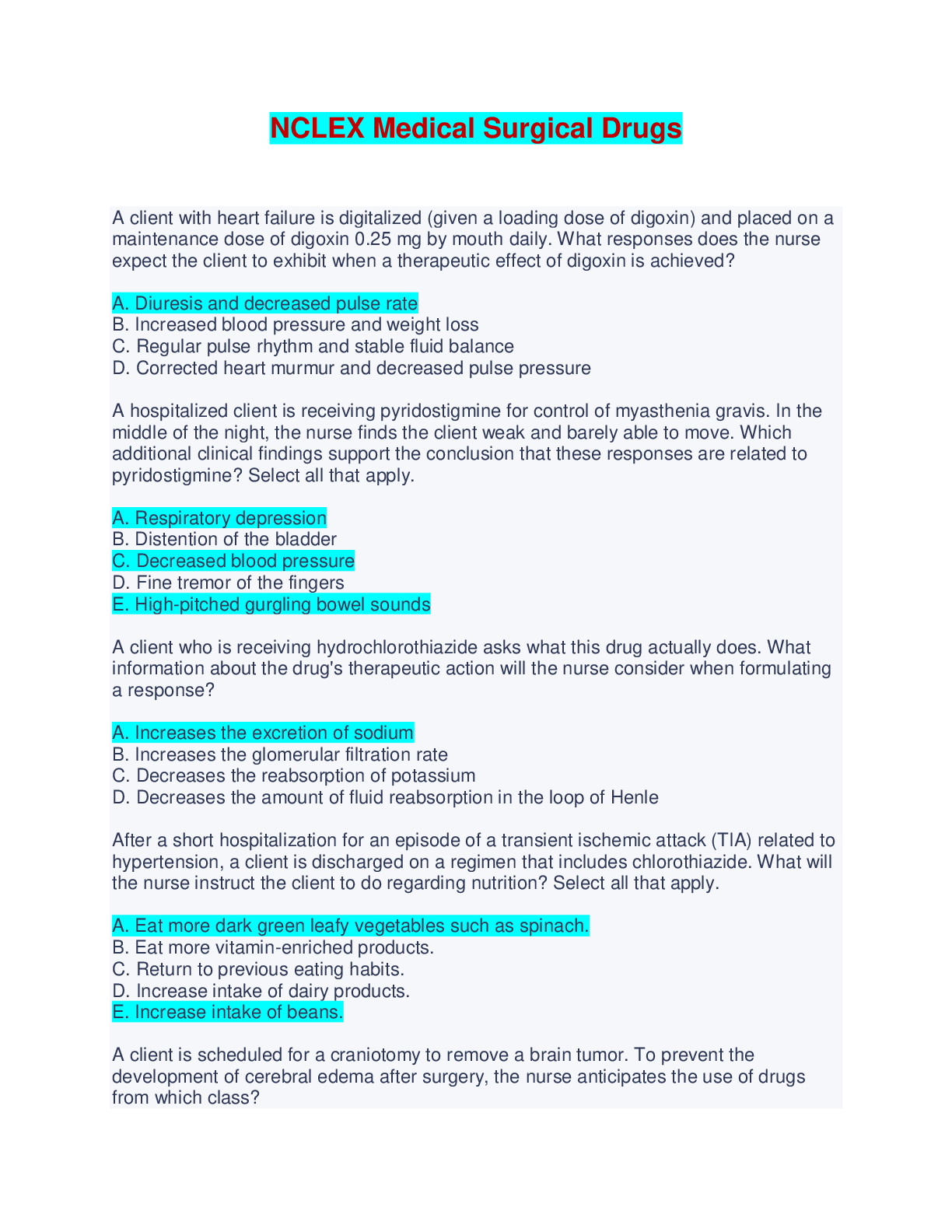 NURSING. > EXAM > NCLEX Medical-Surgical Drugs - Questions and Answers (All)