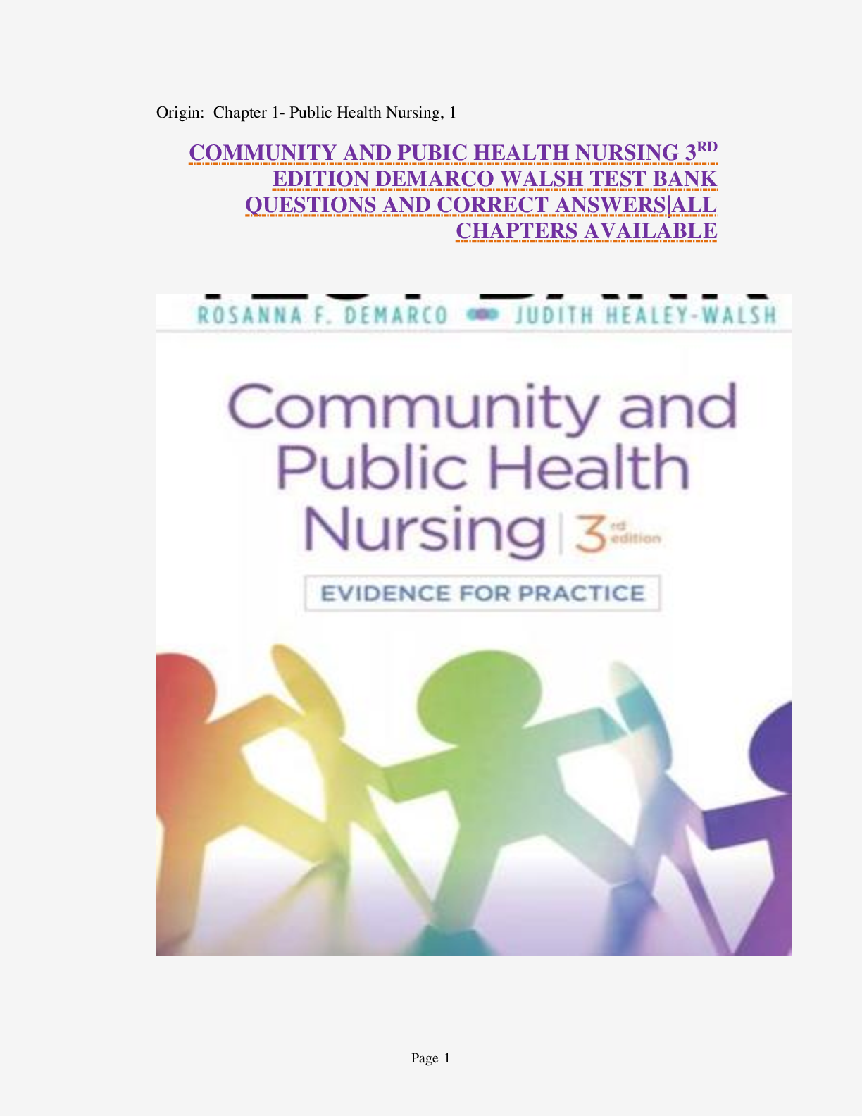 NURSING. > EXAM > COMMUNITY AND PUBIC HEALTH NURSING 3RD EDITION DEMARCO WALSH TEST BANK QUESTIONS AND CORRECT ANSWERS|ALL CHAPTERS AVAILABLE (All)