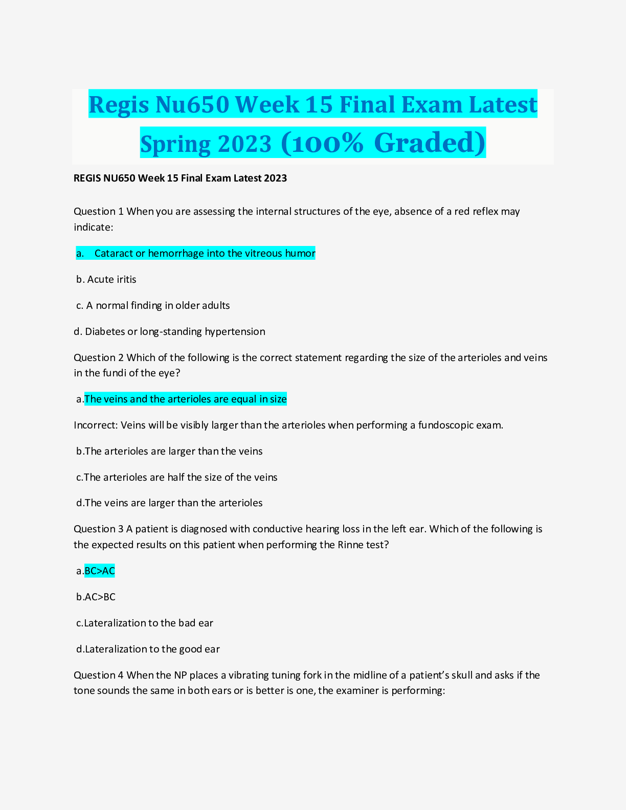 NURSING. > EXAM > Regis Nu650 Week 15 Final Exam Latest Spring 2023 (100% Graded) (All)