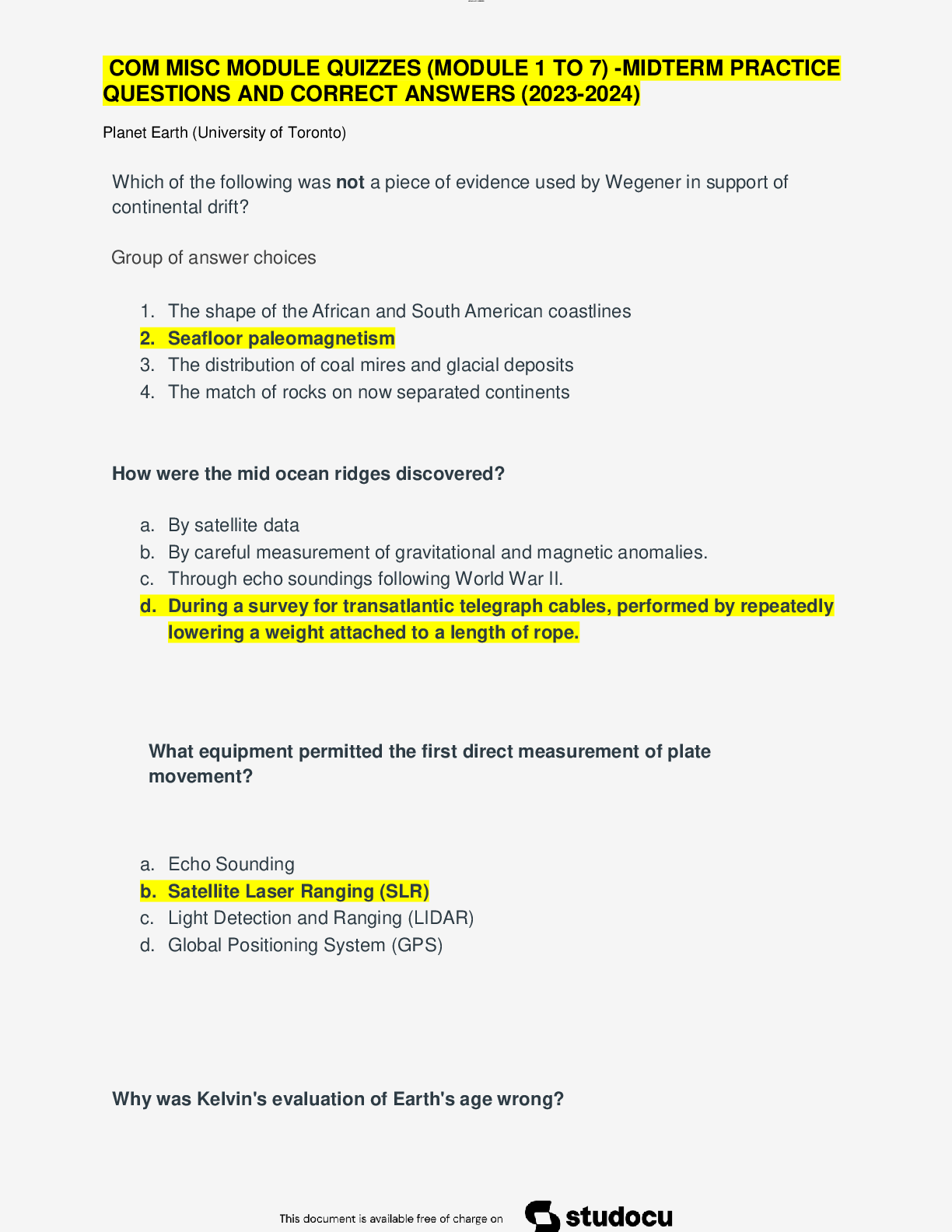 NURSING. > EXAM > COM MISC MODULE QUIZZES (MODULE 1 TO 7) -MIDTERM PRACTICE QUESTIONS AND CORRECT ANSWERS (2023-2024) (All)