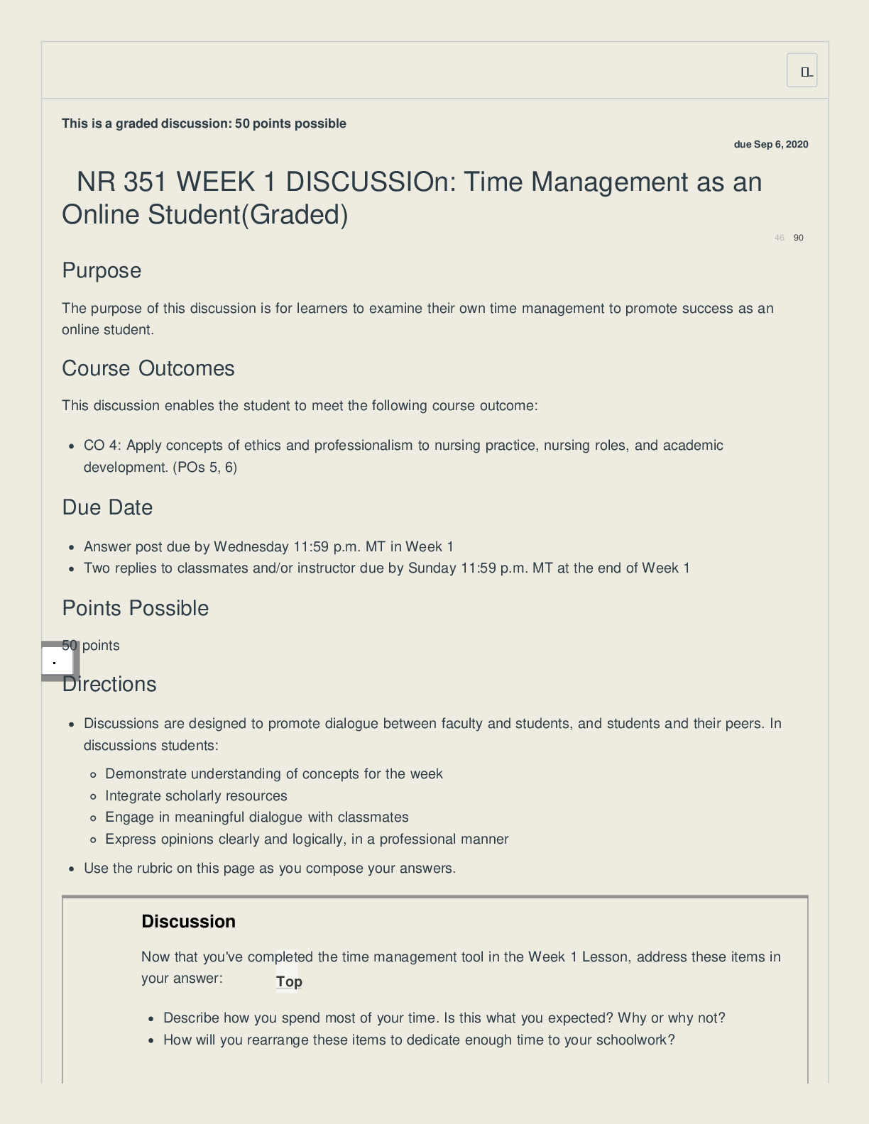 NURSING. > EXAM > NR 351 WEEK 1 DISCUSSIOn: Time Management as an Online Student (Graded) (All)