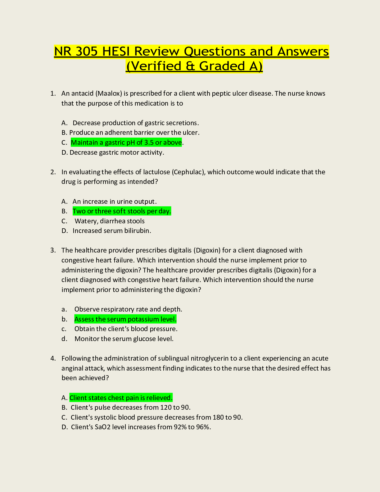 NURSING. > EXAM > NR 305 HESI Review Questions and Answers (Verified & Graded A) (All)