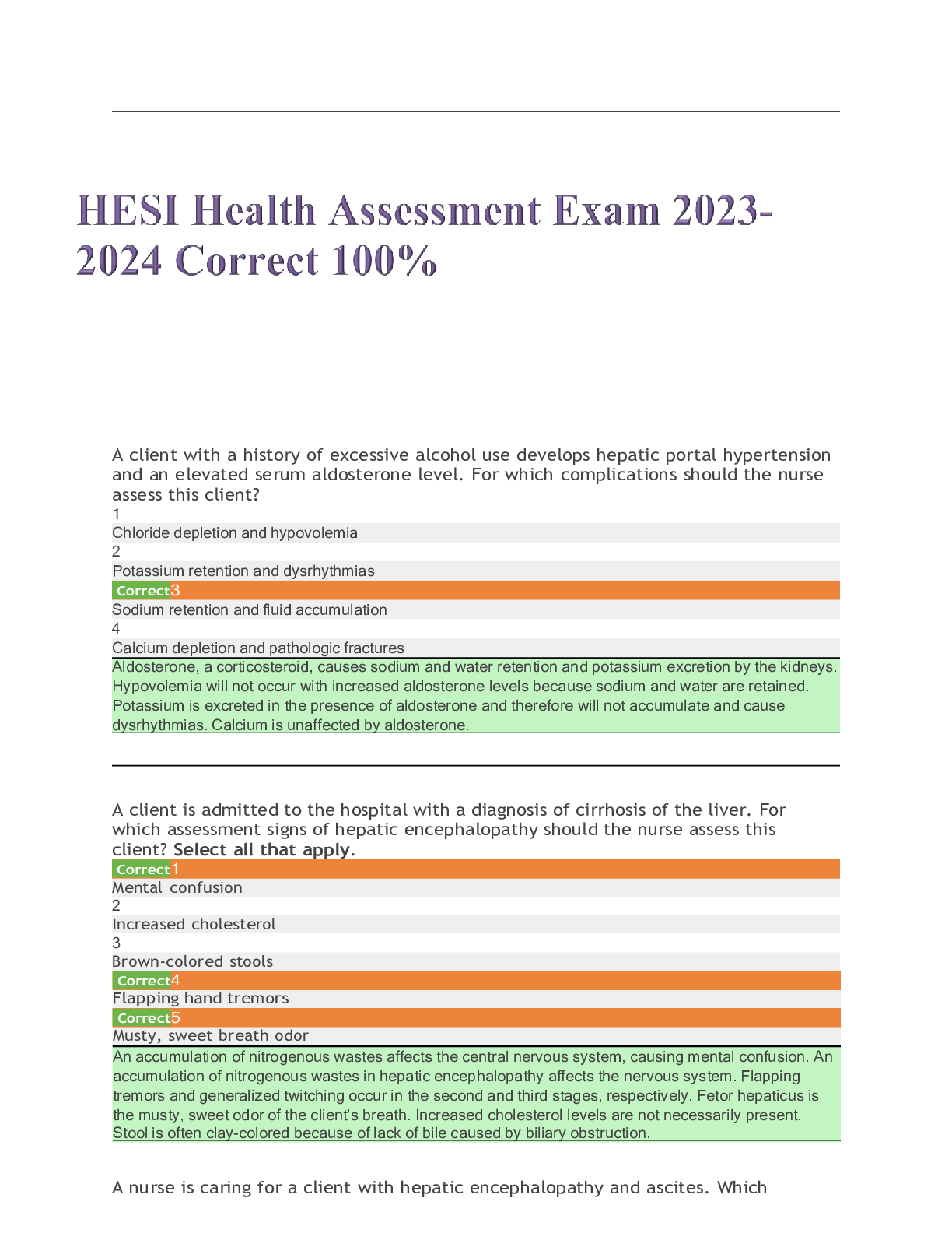 NURSING. > EXAM > hesi health assesment exam 2023-2024 guranteed a+ (All)