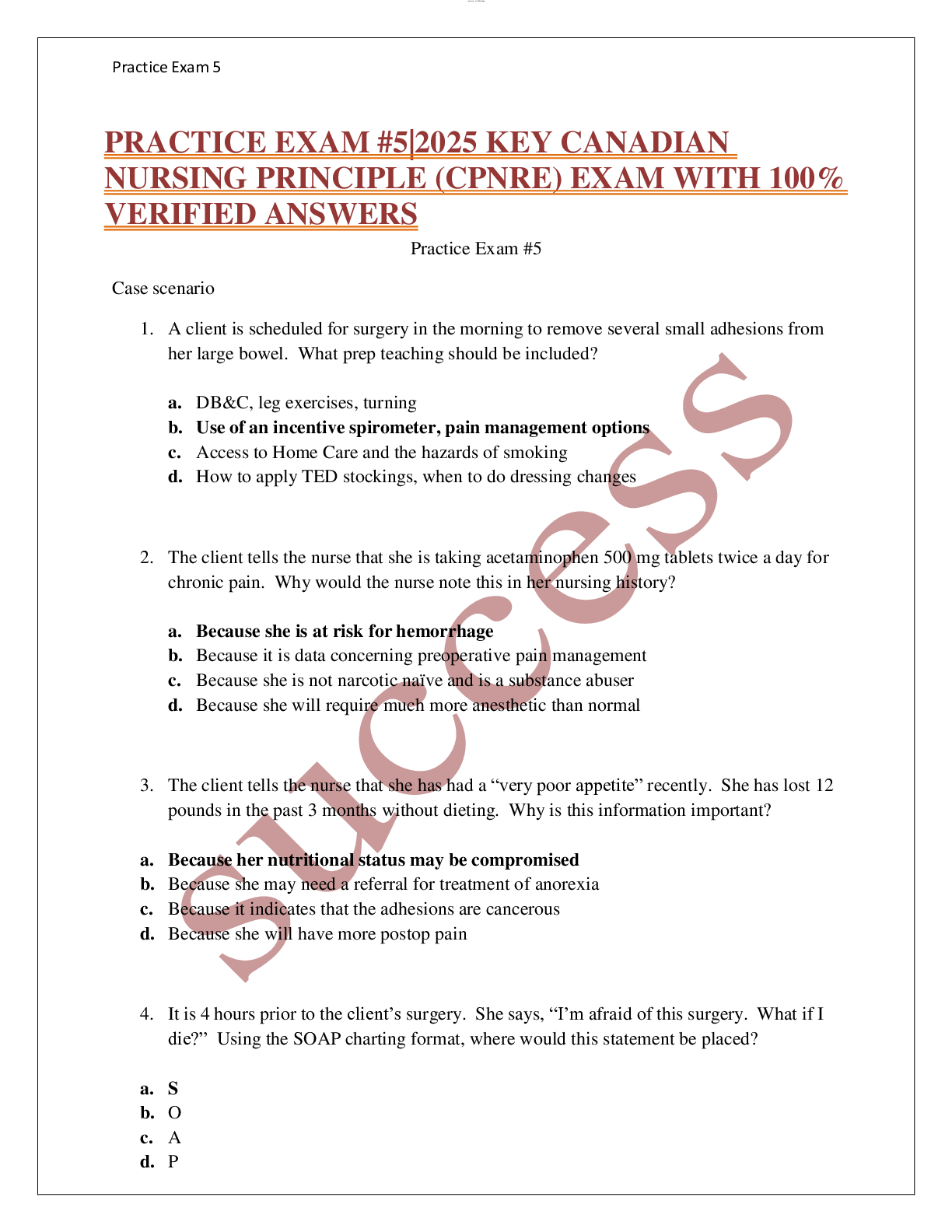 NURSING. > EXAM > PRACTICE EXAM #5|2025 KEY CANADIAN NURSING PRINCIPLE (CPNRE) EXAM WITH 100% VERIFIED ANSWERS (All)
