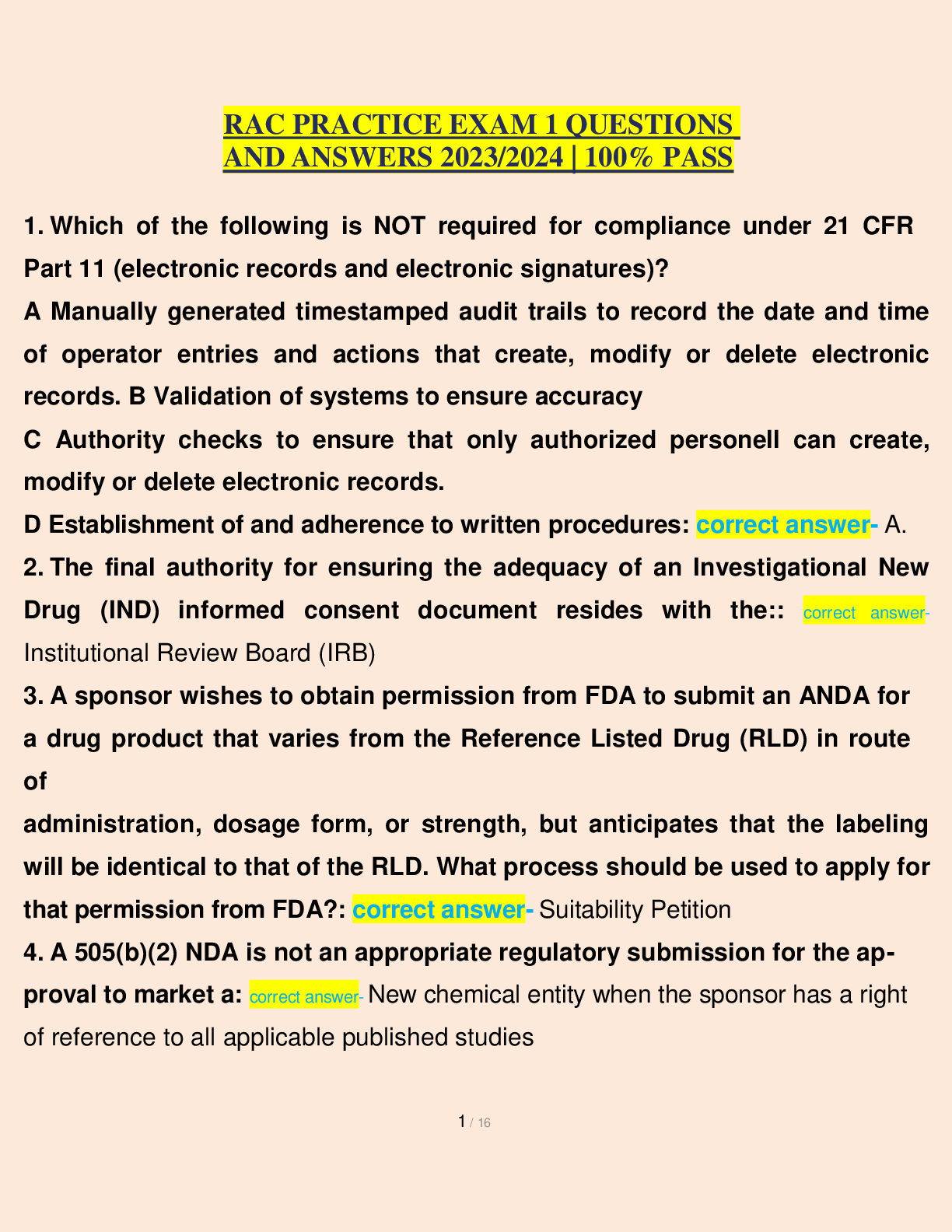NURSING. > EXAM > RAC PRACTICE EXAM 1 QUESTIONS AND ANSWERS 2023/2024 | 100% PASS (All)