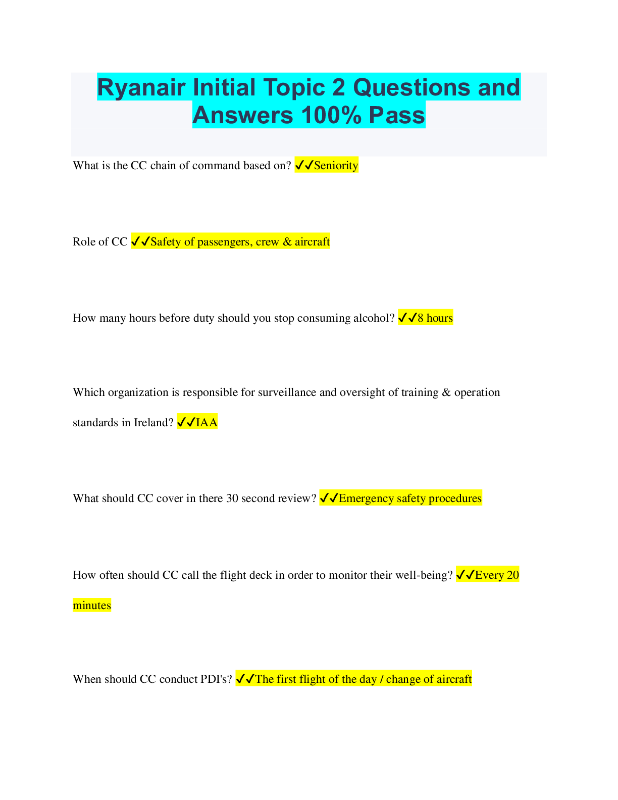 Ryanair security > QUESTIONS & ANSWERS > Ryanair Initial Topic 2 Questions and Answers 100% Pass (All)
