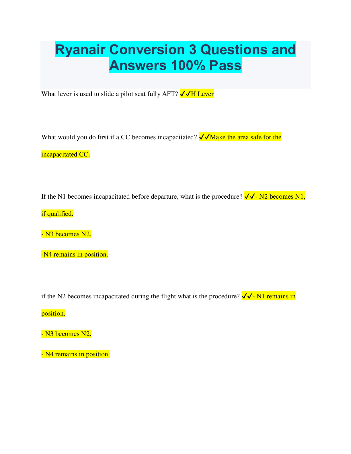 Ryanair security > QUESTIONS & ANSWERS > Ryanair Conversion Questions and Answers 100% Pass (All)