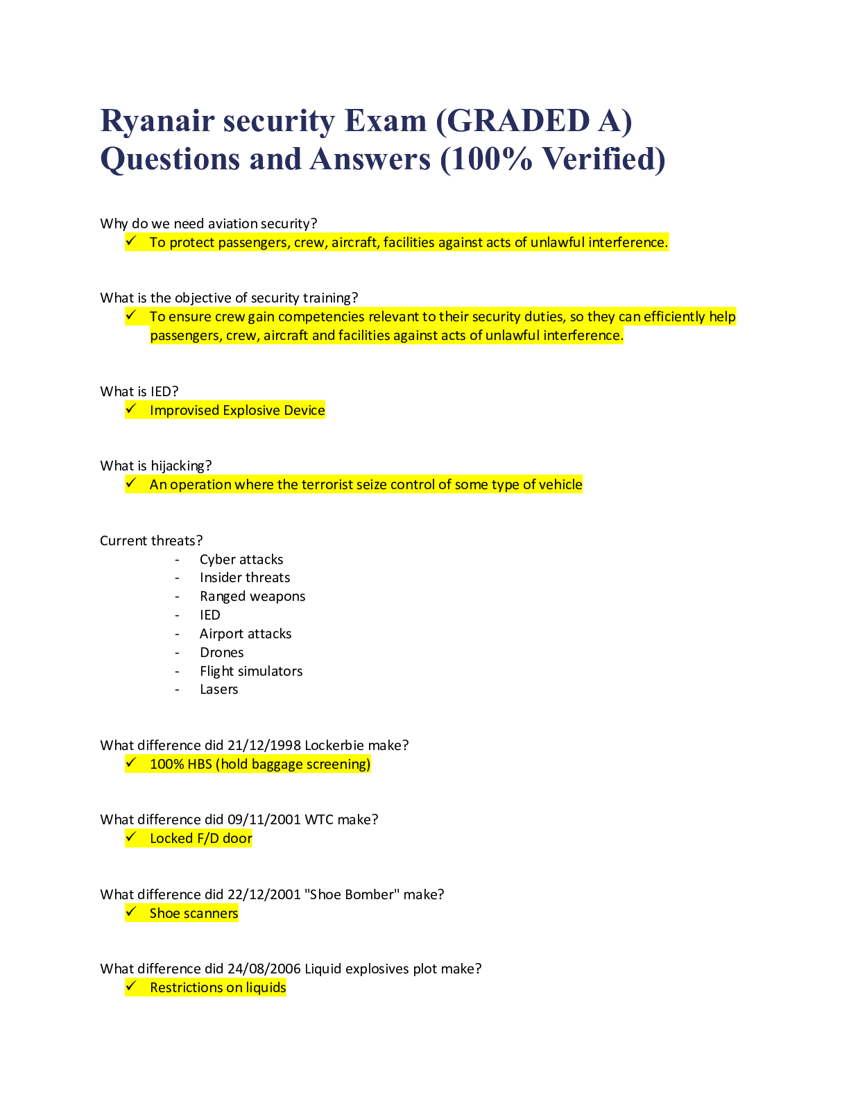 Ryanair security > EXAM > Ryanair security Exam (GRADED A) Questions and Answers (100% Verified) (All)