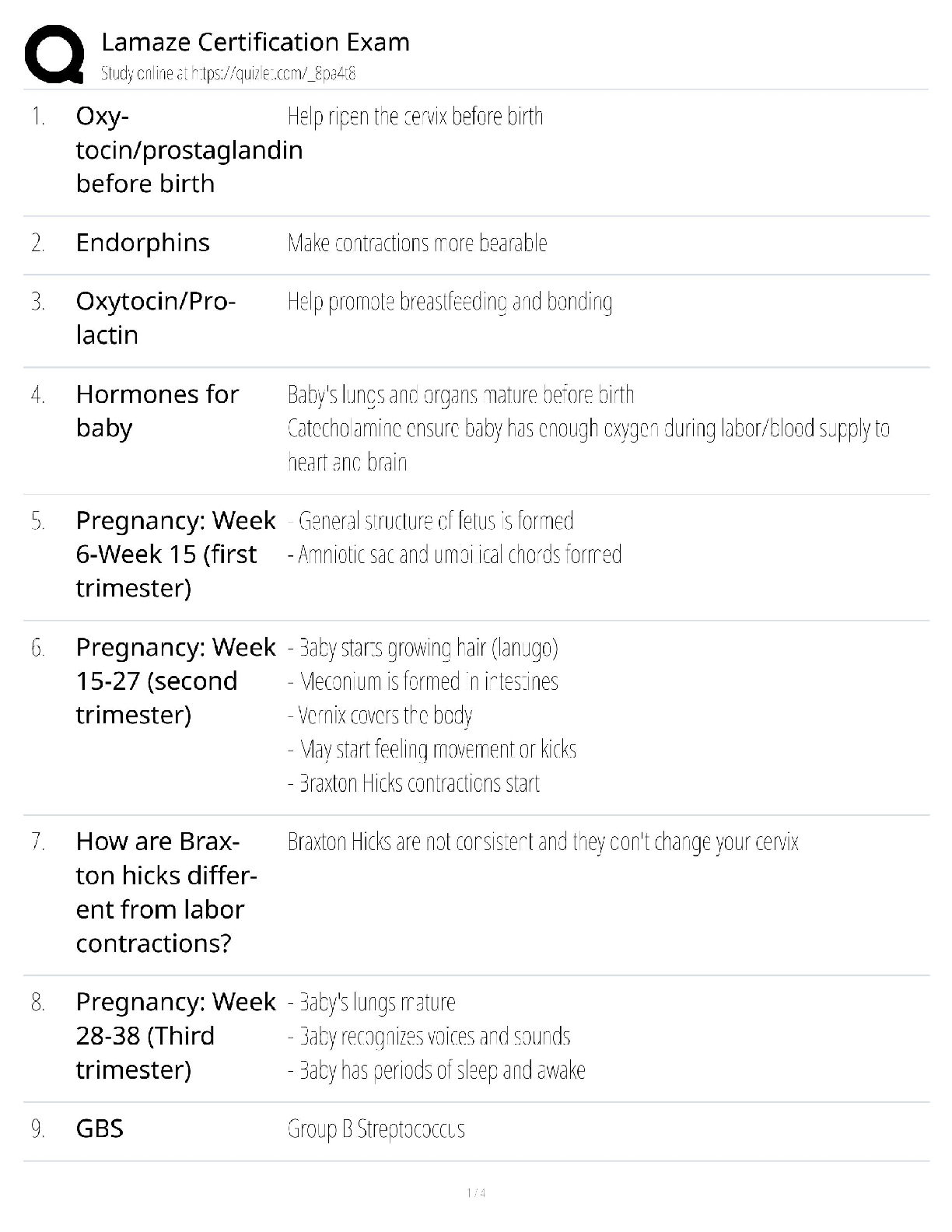 Maternal Child Nursing Care > QUESTIONS & ANSWERS > Lamaze Certification Exam / Childbirth Educator / 2025 Study Guide / Score 100% / Test Bank (All)