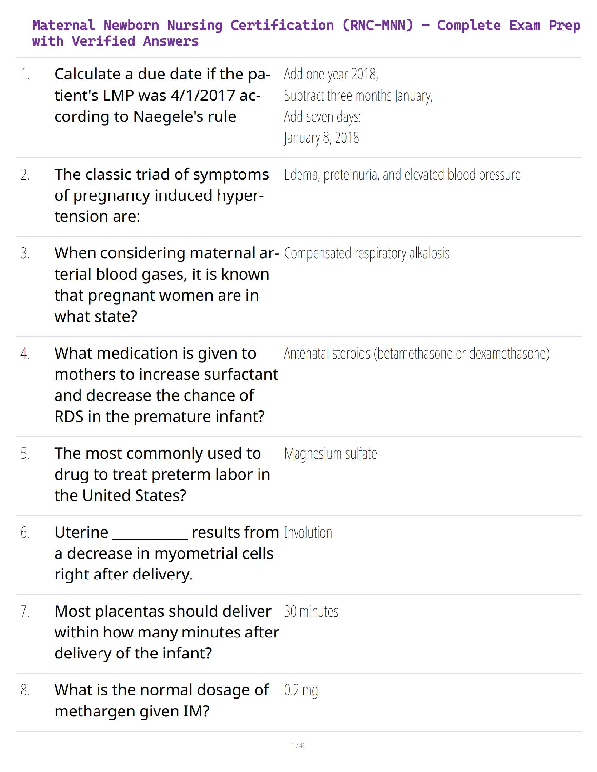 Maternal Child Nursing Care > QUESTIONS and ANSWERS > Maternal Newborn Nursing Certification (RNC-MNN) – Complete Exam Prep with Verified Answers (All)