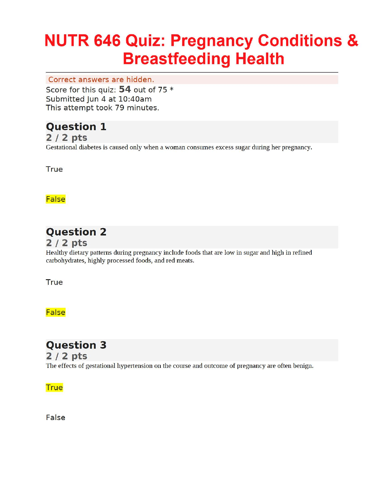 Maternal Child Nursing Care > Quiz > 📘 NUTR 646 Quiz: Pregnancy Conditions & Breastfeeding Health ✅ (All)