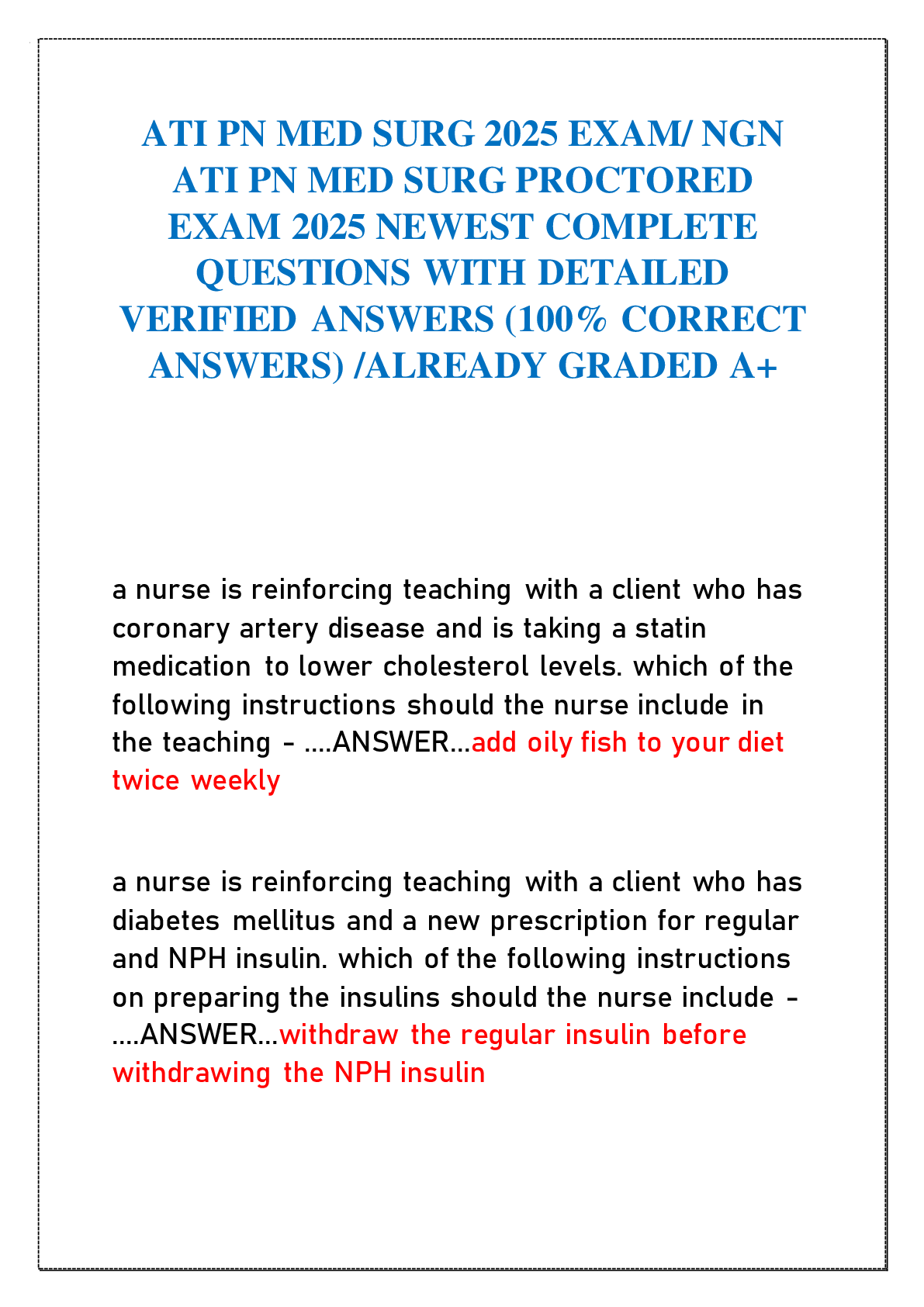 ATI PN COMPREHENSIVE > EXAMs > ATI PN MED SURG 2025 EXAM/ NGN ATI PN MED SURG PROCTORED EXAM 2025 NEWEST COMPLETE QUESTIONS WITH DETAILED VERIFIED ANSWERS (100% CORRECT ANSWERS) /ALREADY GRADED A+ (All)