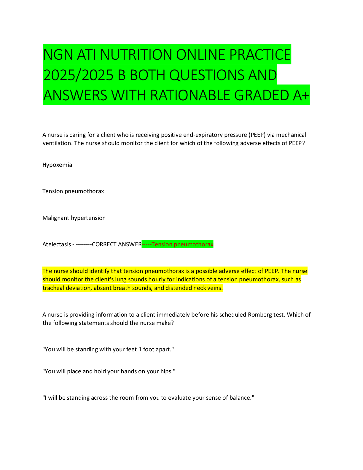 ATI - RN Nutrition > EXAM > NGN ATI NUTRITION ONLINE PRACTICE 20252025 B BOTH QUESTIONS AND ANSWERS WITH RATIONABLE GRADED A+ (All)
