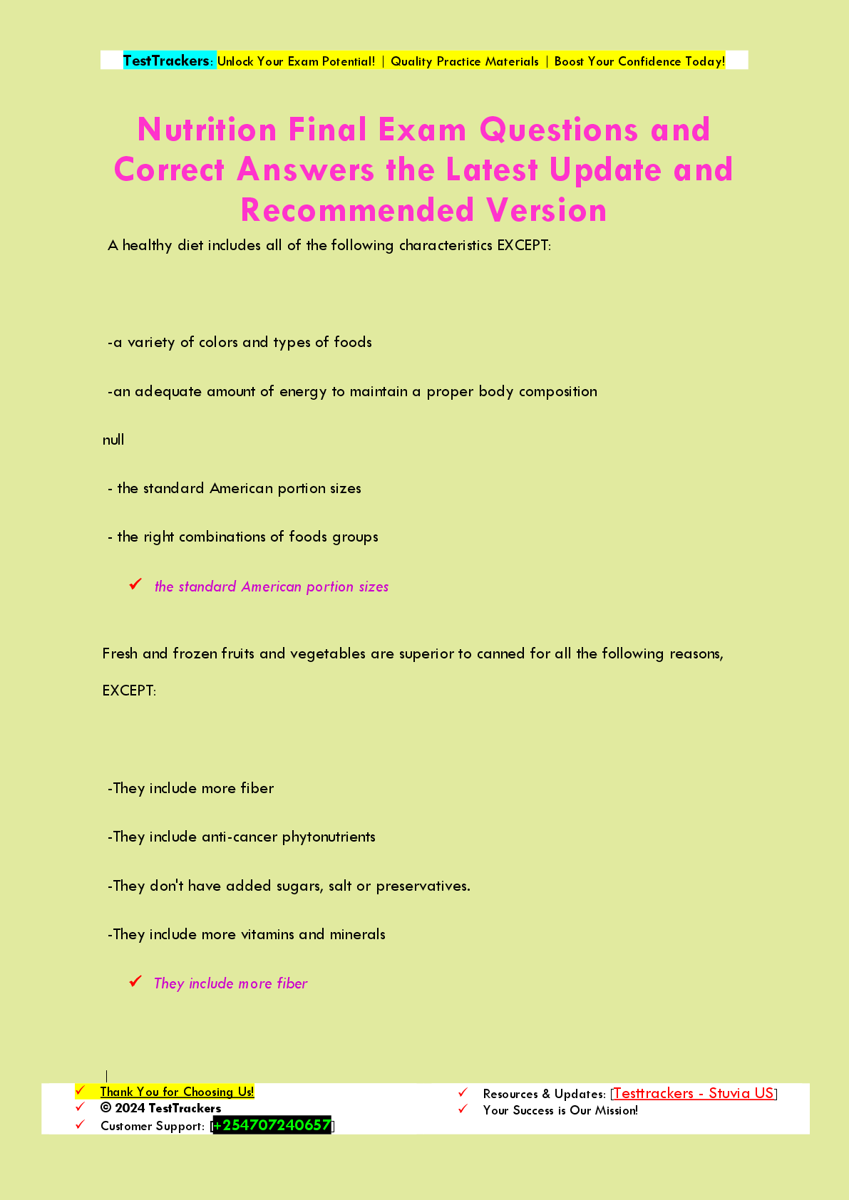 ATI - RN Nutrition > EXAM > Nutrition final exam questions and correct answers the latest update and recommended versio1 (All)