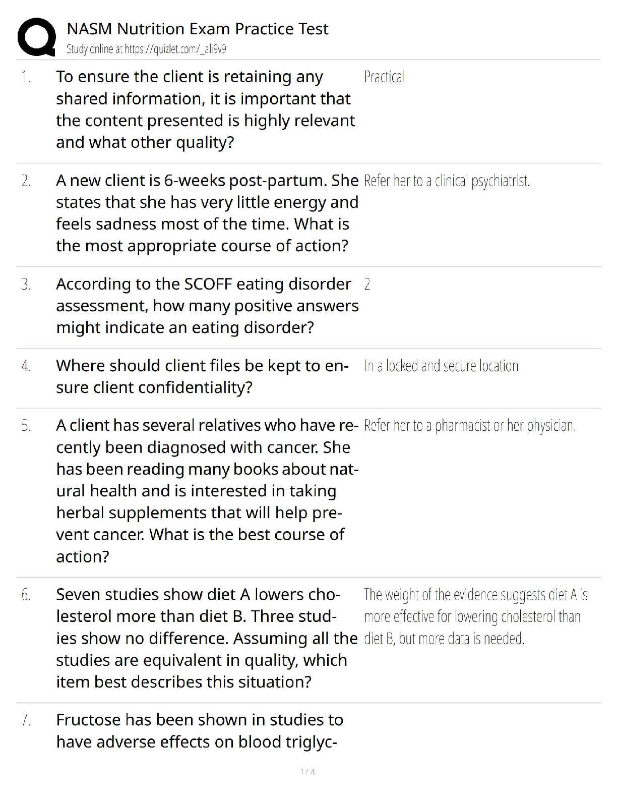 ATI - RN Nutrition > QUESTIONS & ANSWERS > NCSF Nutritionist Practice Exam / 2025 Update / Score 100% Study Guide & Test Bank (All)