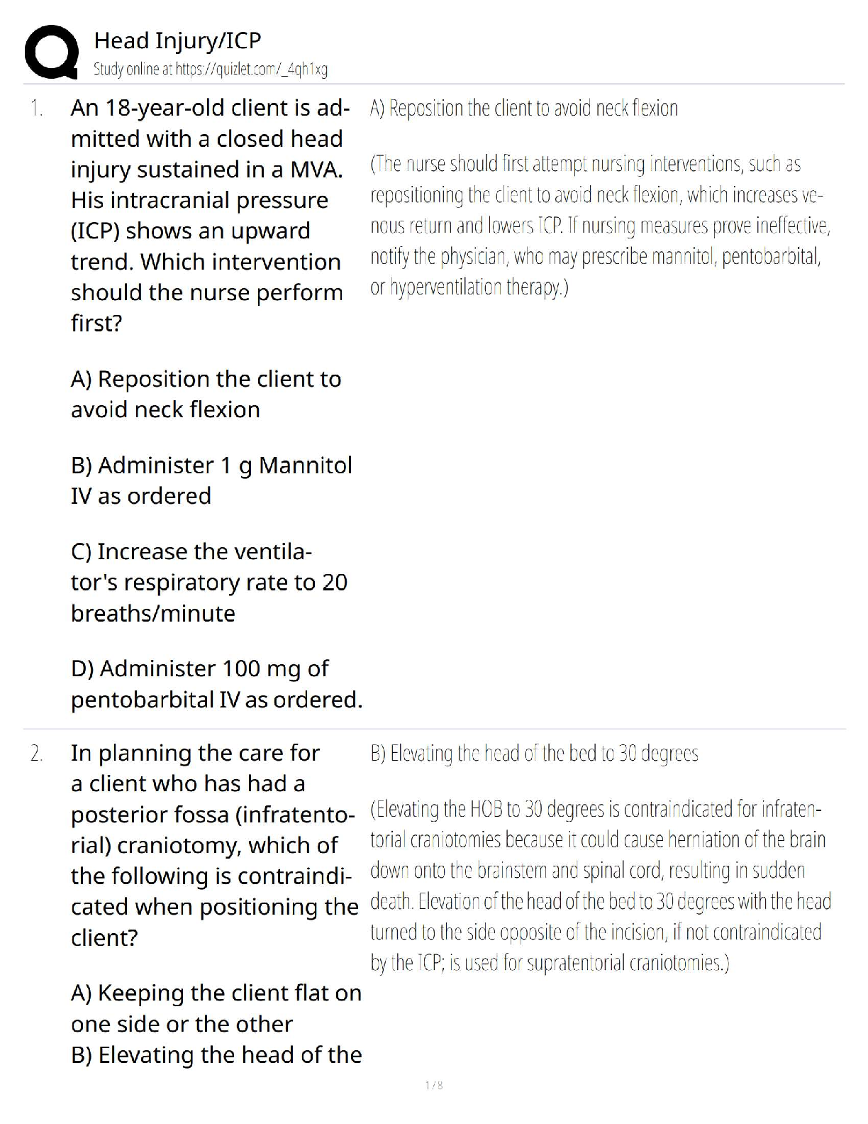 ATI - RN Nutrition > QUESTIONS & ANSWERS > Head Injury / ICP / ATI Exam / Proctored Test Bank / Score 100% / New Version / 2025 Update / Study Guide + Practice Questions (All)