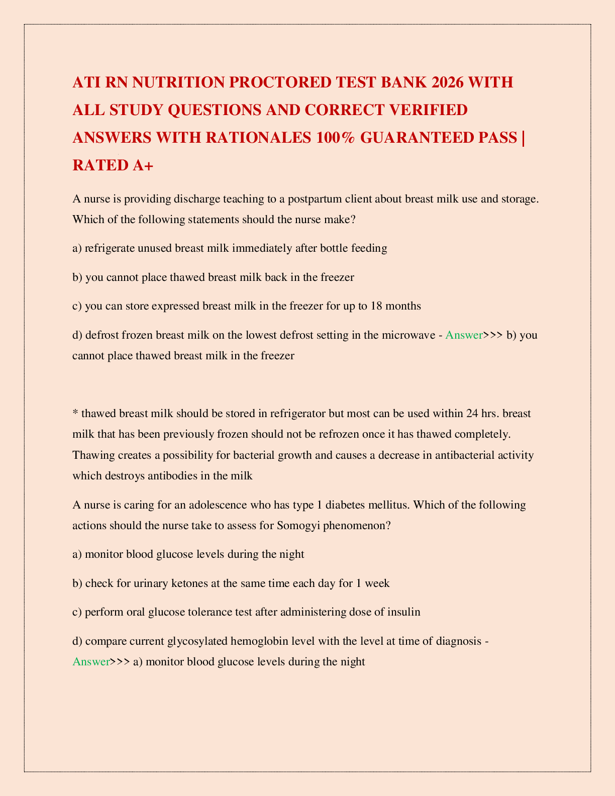 ATI - RN Nutrition > EXAM > ATI RN NUTRITION PROCTORED TEST BANK 2026 WITH ALL STUDY QUESTIONS AND CORRECT VERIFIED ANSWERS WITH RATIONALES 100% GUARANTEED PASS | RATED A+ (All)