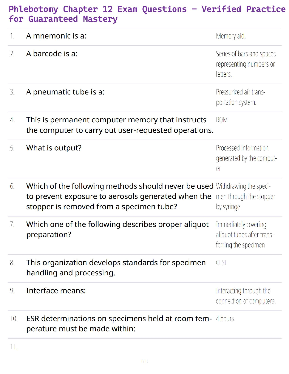 NHA phlebotomy > QUESTIONS and ANSWERS > Phlebotomy Chapter 12 Exam Questions – Verified Practice for Guaranteed Mastery (All)