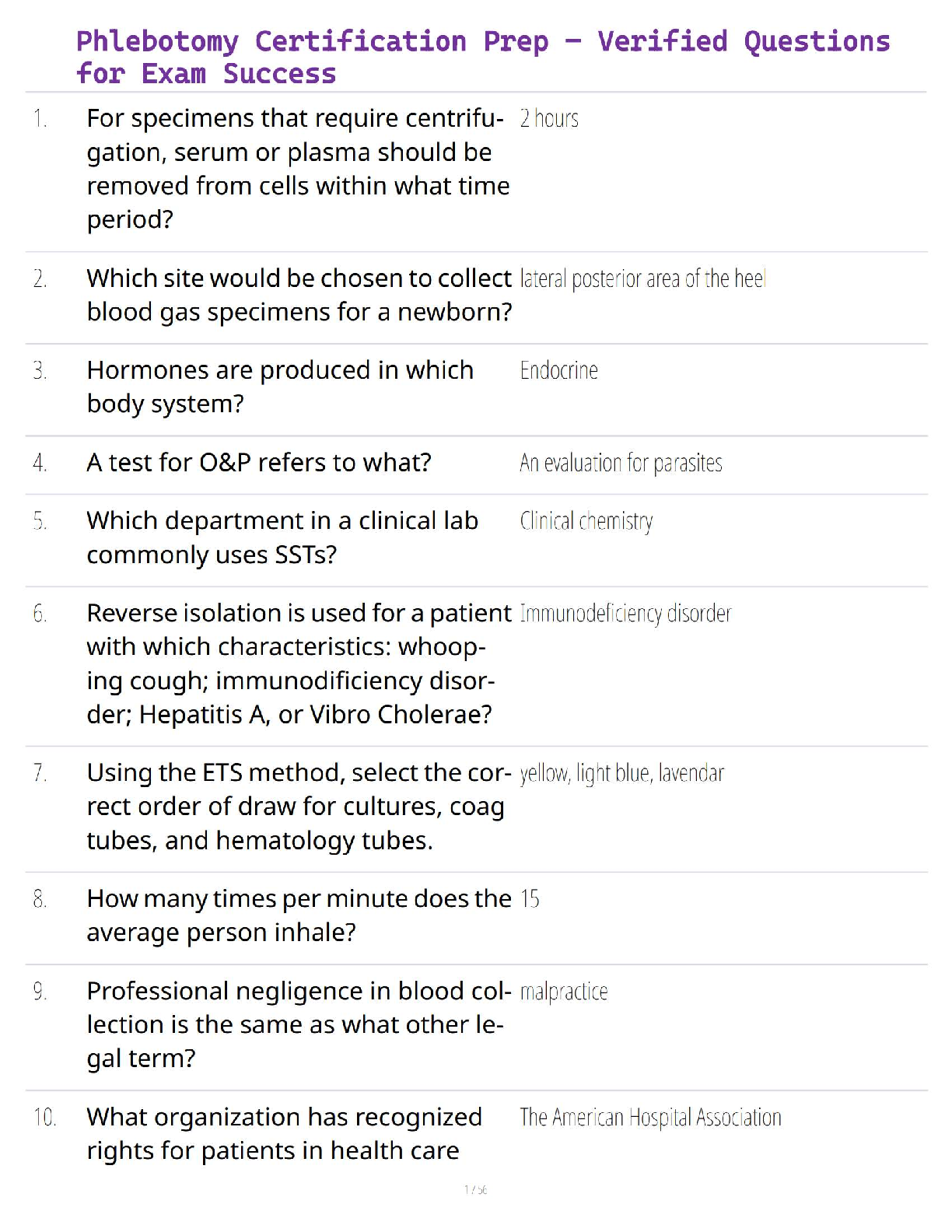 NHA phlebotomy > QUESTIONS and ANSWERS > Phlebotomy National Exam Prep – Verified Questions for Guaranteed Success (All)
