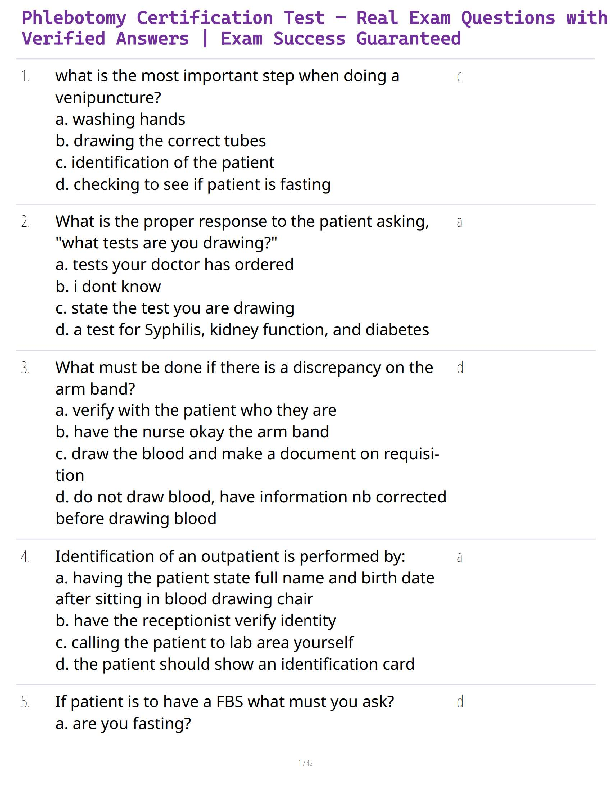 NHA phlebotomy > QUESTIONS and ANSWERS > Phlebotomy Exam Success Pack – Verified Questions & Correct Answers (All)