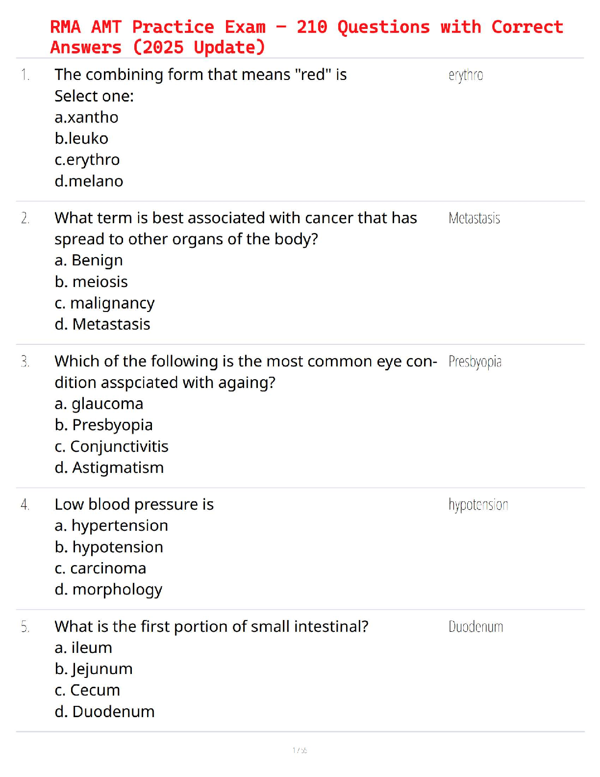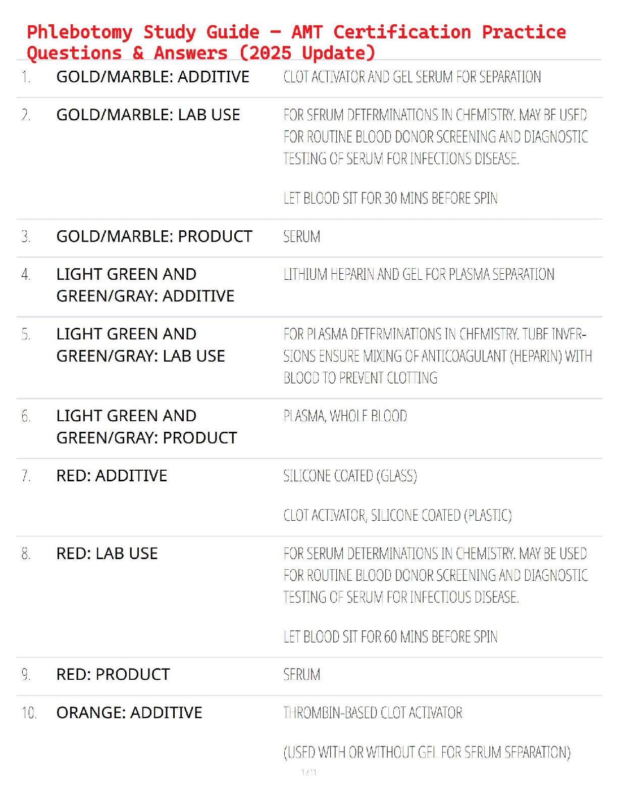 NHA phlebotomy > QUESTIONS and ANSWERS > Phlebotomy Study Guide – AMT Certification Practice Questions & Answers (2025 Update) (All)