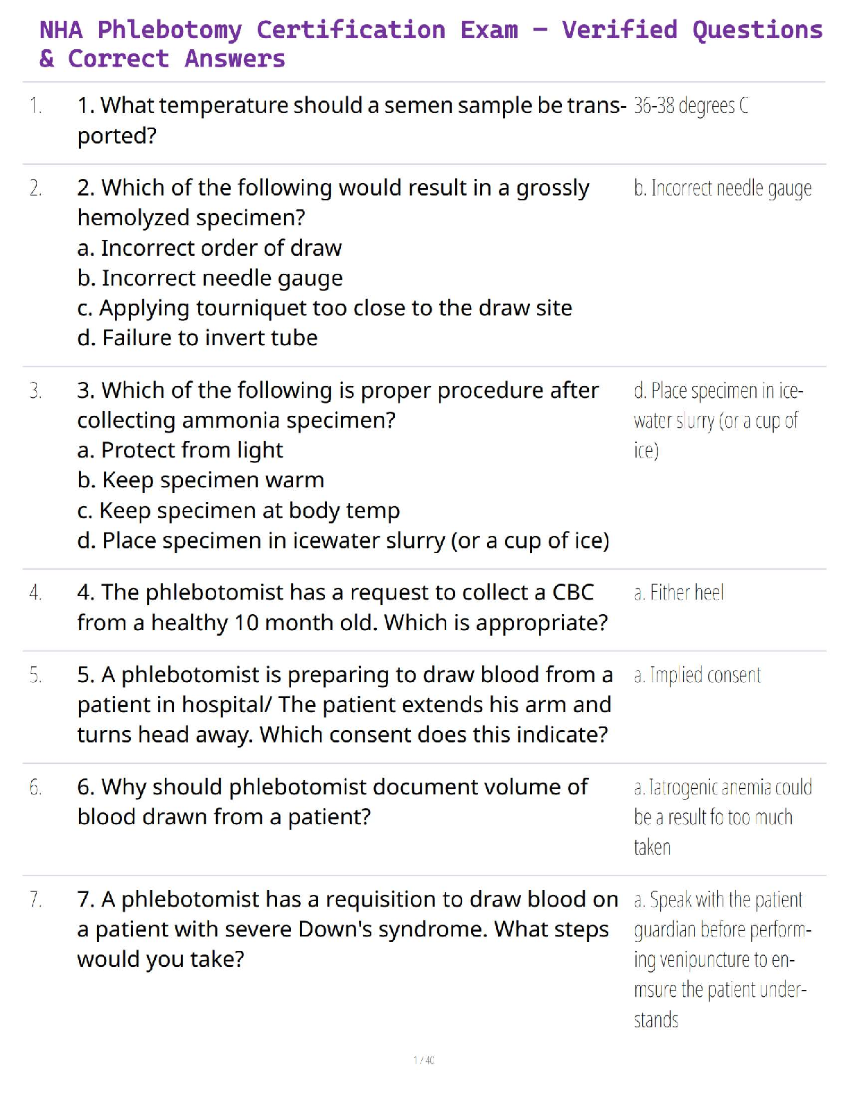 NHA phlebotomy > QUESTIONS and ANSWERS > NHA Phlebotomy Exam Prep – Verified Questions for Guaranteed Success (All)